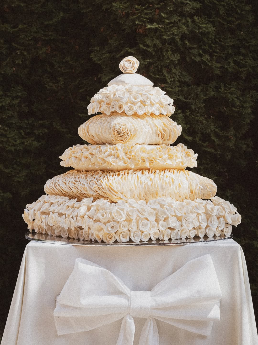 Вызовет «вау»-эффект ещё до того, как гости его попробуют. Идеален для масштабных свадеб — высокий, многослойный и по-настоящему зрелищный.