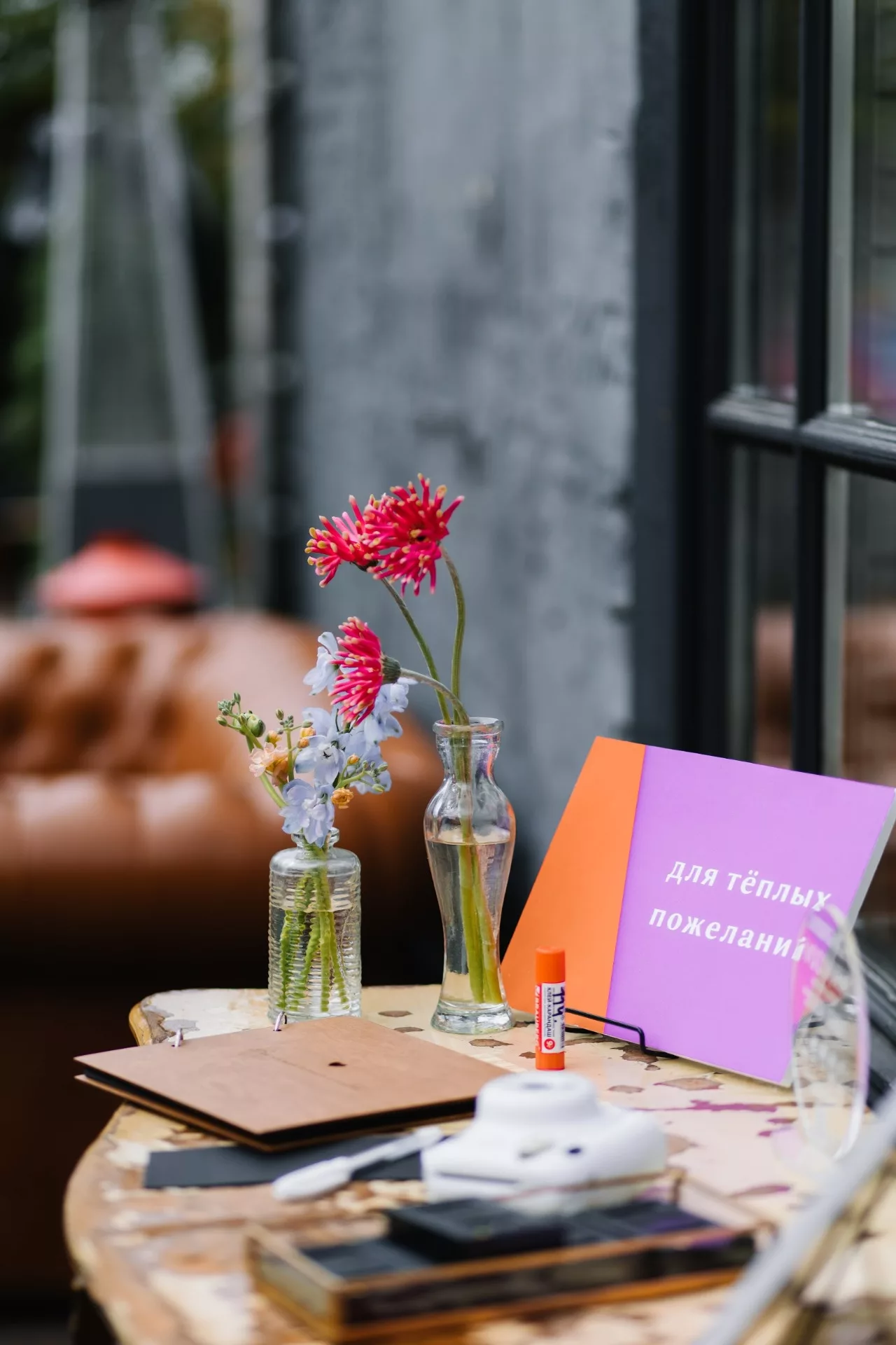 Арт-зона — здесь гости смогут создать открытки и мини-иллюстрации. Подготовьте все необходимые инструменты: плотную бумагу, карточки и краски, и также добавьте место для готовых работ, например, эстетичный альбом.