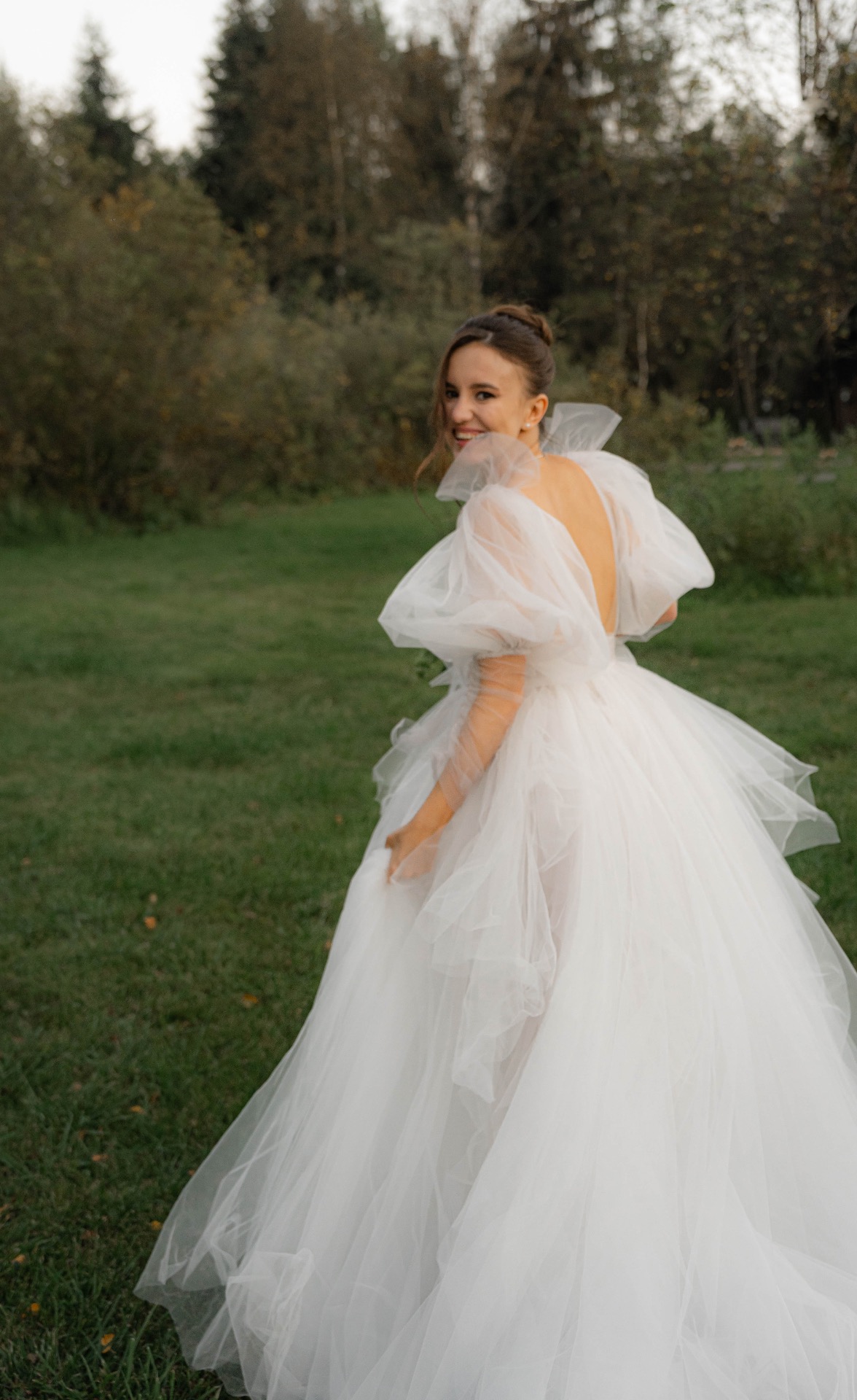 Честно говоря, я не столкнулась с проблемой бесконечных походов по салонам. Наверное, мне просто повезло стать той счастливицей, которая влюбляется в «то самое» платье с первой же примерки. И за год мой вкус не изменился, я не испытала ни капли сожаления по поводу выбранного наряда.