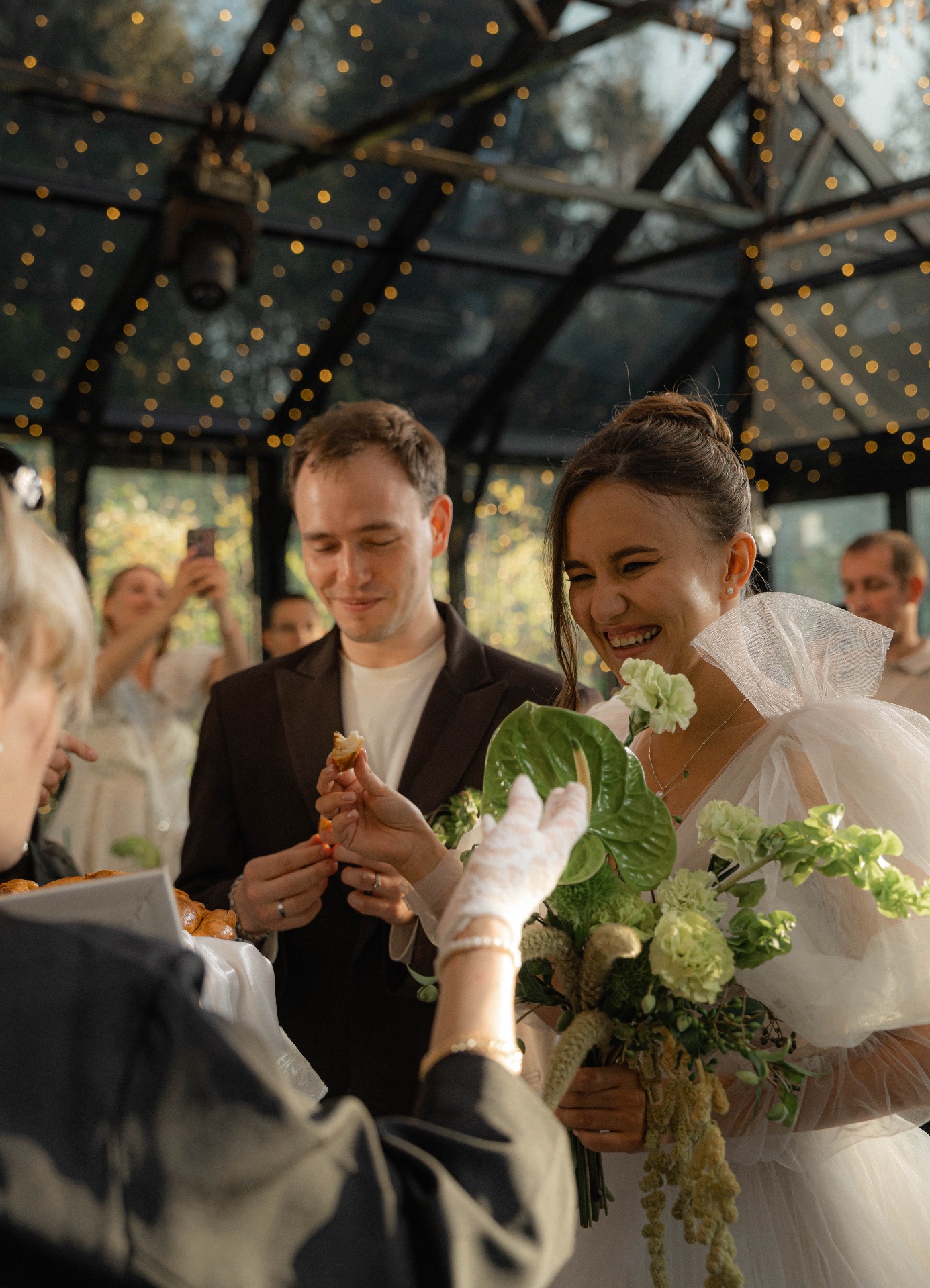 Концепцию мы определили сразу: свадьба в лесной атмосфере. Наш выбор пал на оранжерею Грин хаус, которая идеально соответствовала нашей идее.