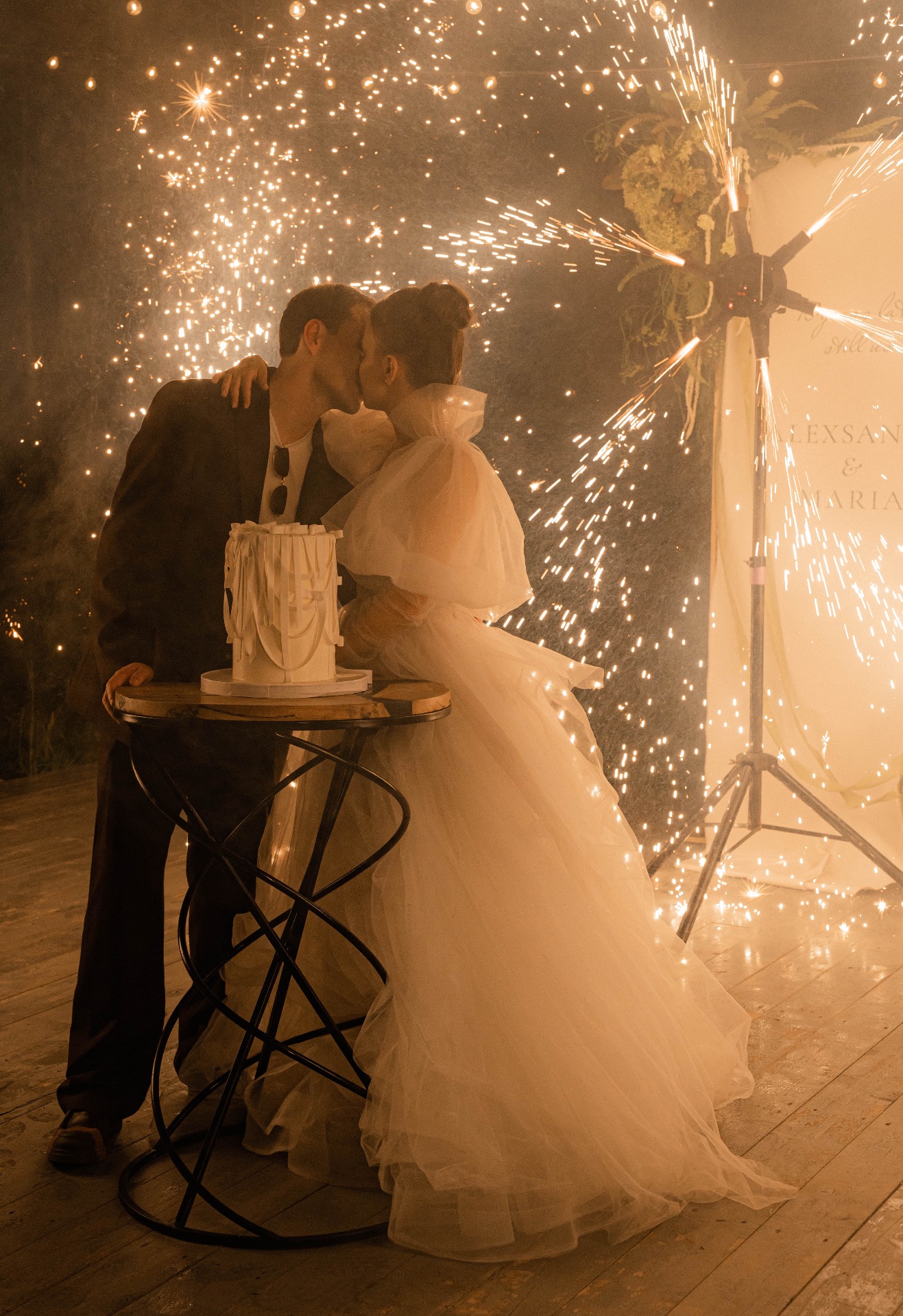 Что касается стандартных свадебных активностей, то они у нас пошли не по плану. Нас сильно подвёл координатор, поэтому первый танец мы, по сути, станцевали спиной к гостям, а торт и салют случились с большим опозданием.