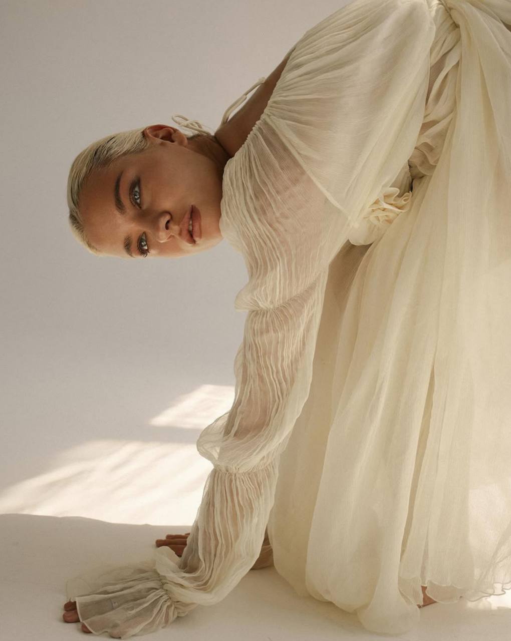 Помни, что на контрасте с белым платьем загорелая кожа будет казаться ещё темнее, а это не всегда выглядит естественно.