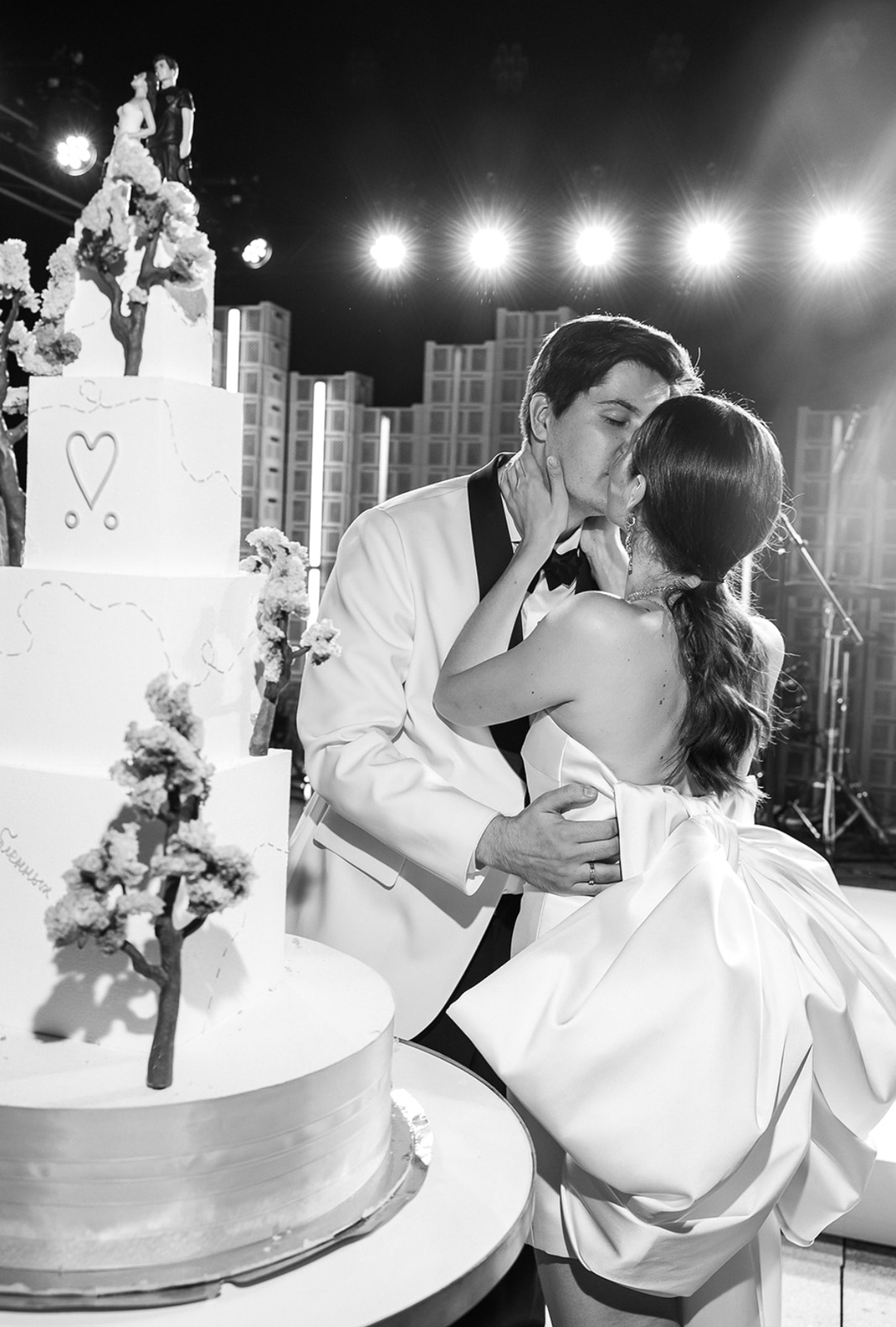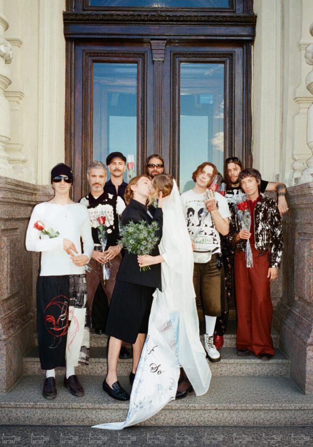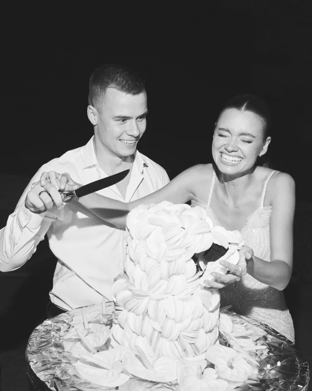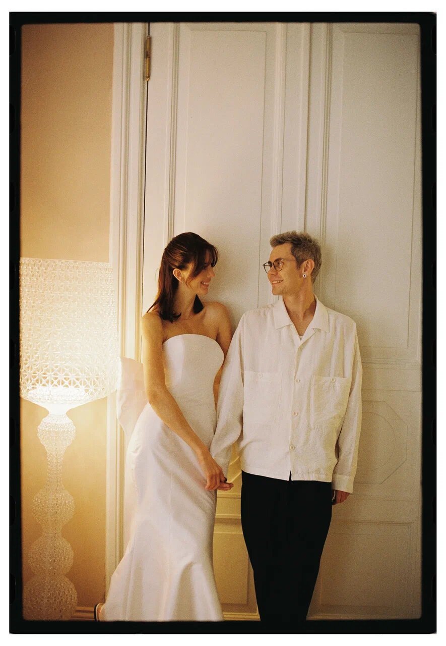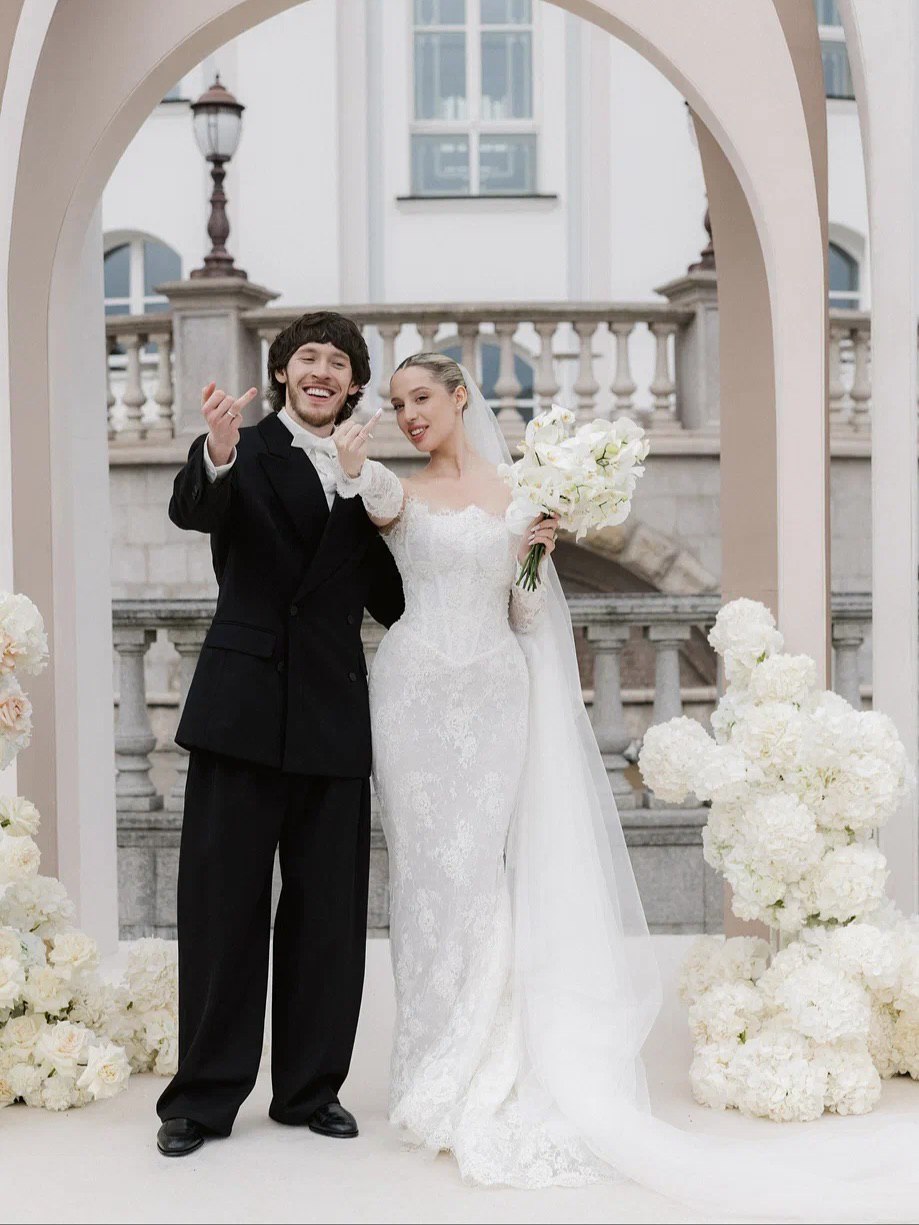 Ребята расписались в сентябре 2025 года, а основной праздник прошёл в отеле «Метрополь», кадры с которого мы всё ещё ждём. Помимо этого, у них было сразу четыре концептуальные съёмки. Одна из них прошла по знаковым локациям Петербурга: её главный замысел — воплощение русских традиций в современном прочтении, поэтому мы увидели и белого коня, и взлетающих голубей, и, конечно, классических лебедей на торте.