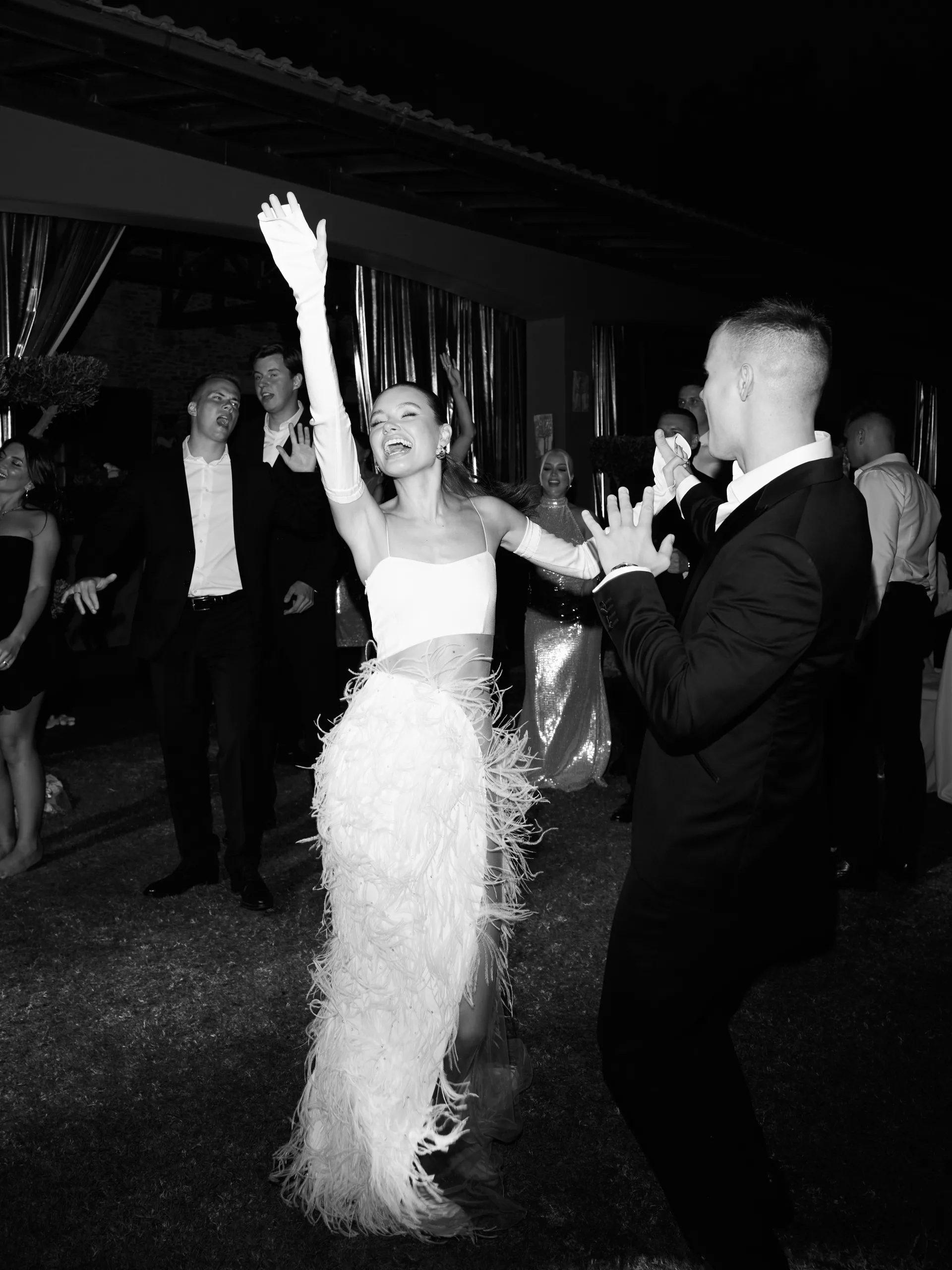 Основное свадебное торжество прошло 25 августа 2025 года. В качестве основного образа невесты Яна выбрала асимметричное корсетное платье со шлейфом, классическую фату с кружевной отделкой и туфли на ультравысоком каблуке. Образ получился элегантным, но с характером, ровно в её стиле.