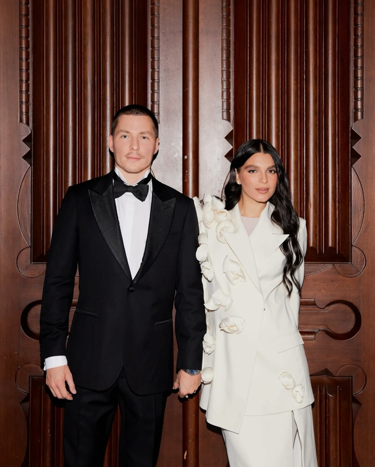 Для образа невесты Анастасия выбрала классическое кружевное платье с приталенным силуэтом, а рэпер остановился на чёрном смокинге. Поздравить пару приехали близкие друзья, инфлюенсеры и артисты, среди них блогер Дилара, певец Feduk и другие.