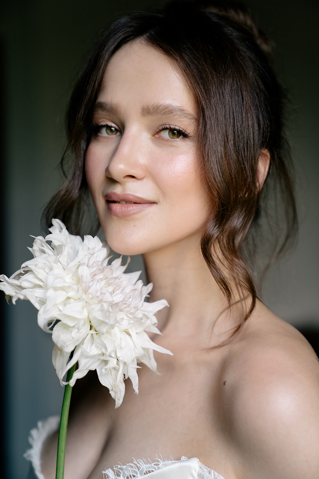 Отдельной нашей любовью стал образ невесты: Адель выбрала роскошное корсетное платье с вырезом в форме сердца и фату с ручной вышивкой «Till the end».