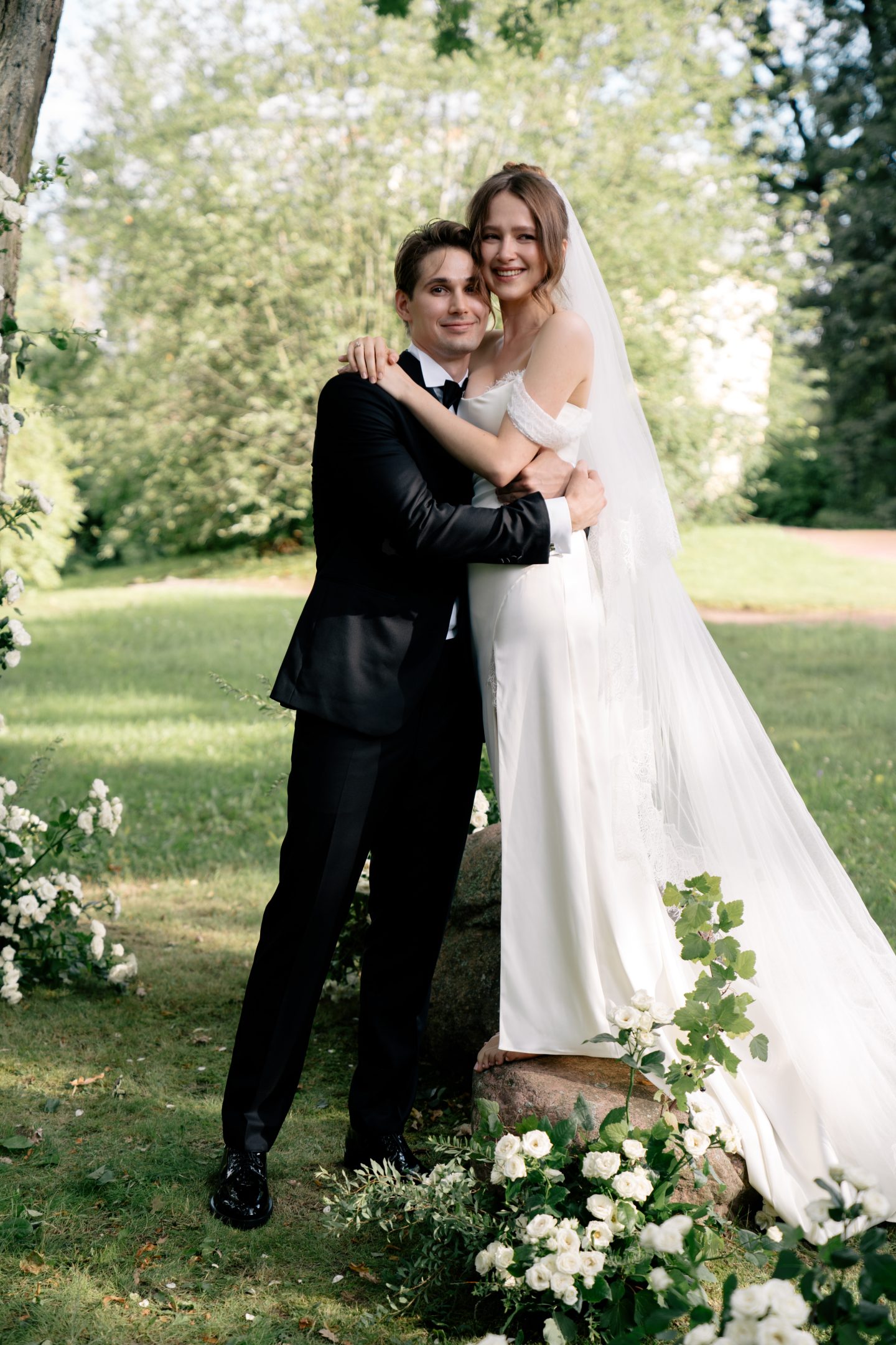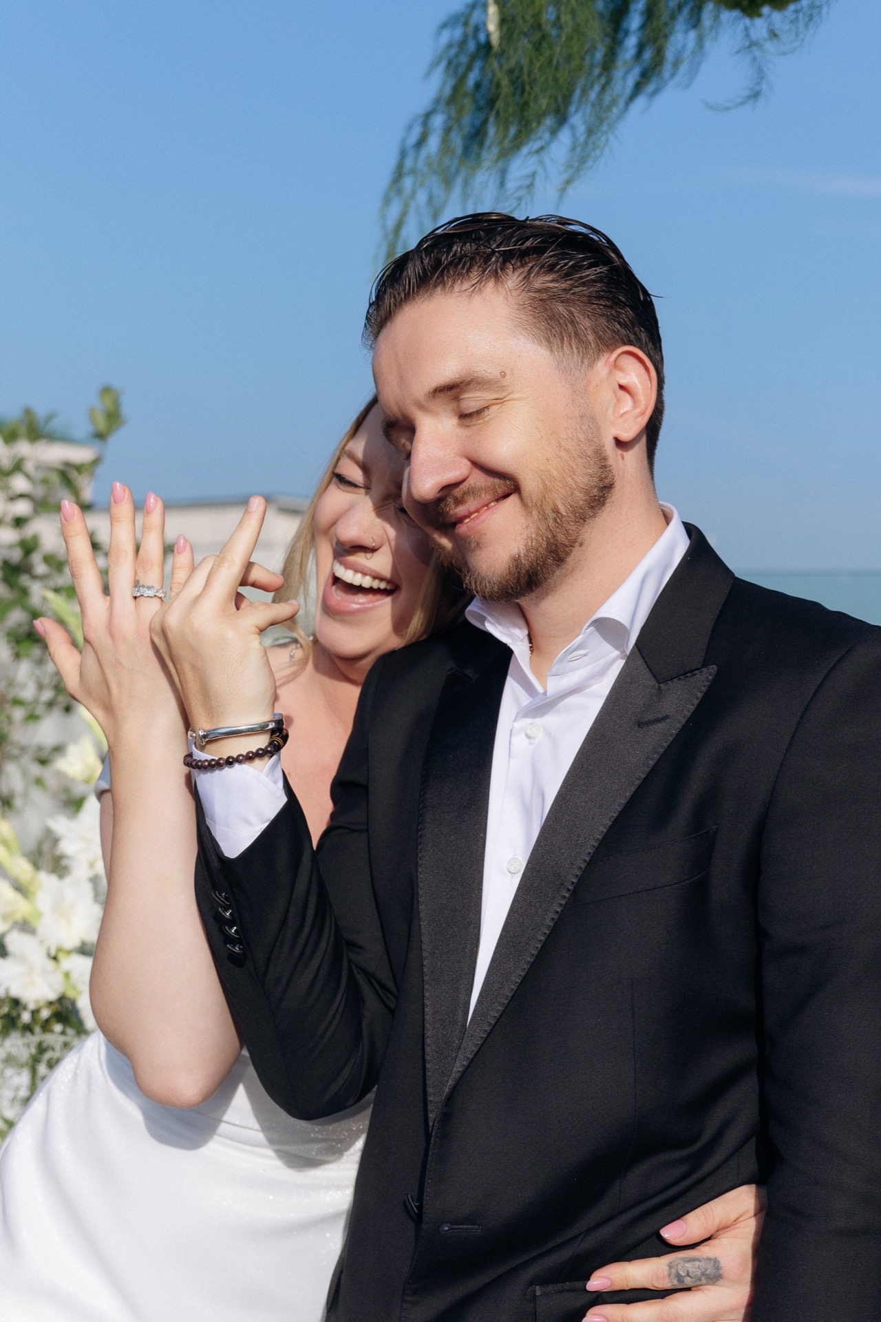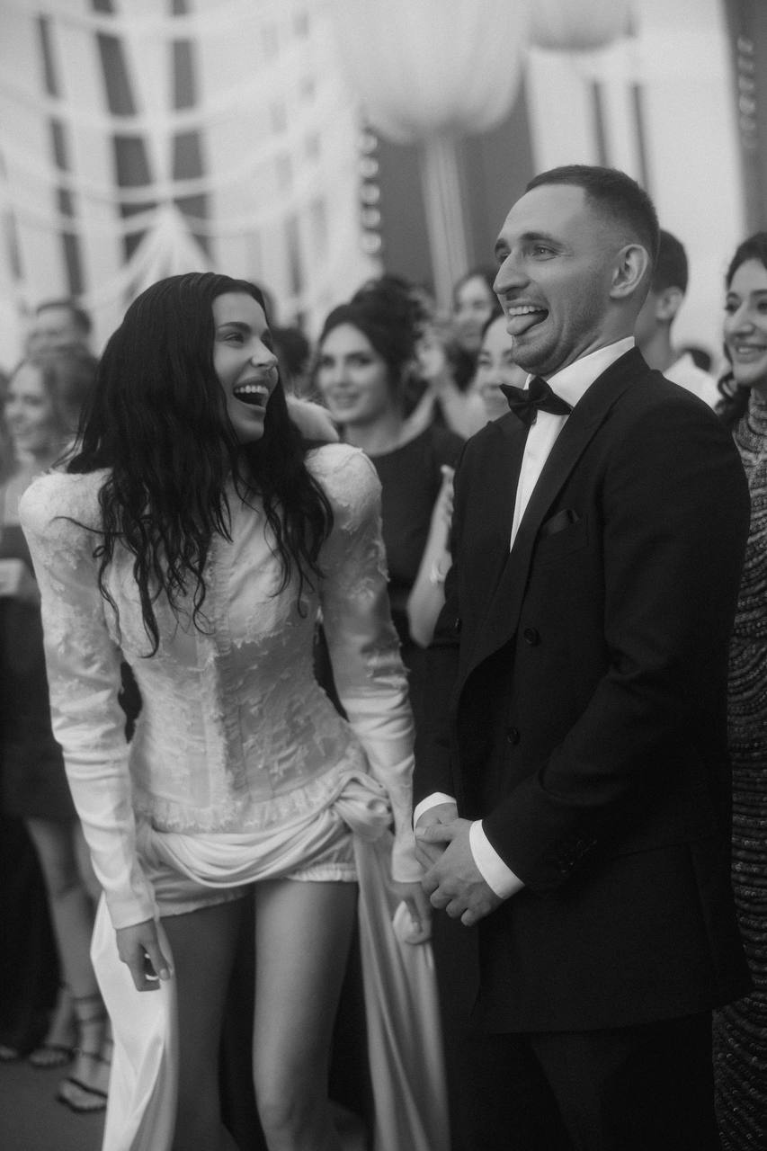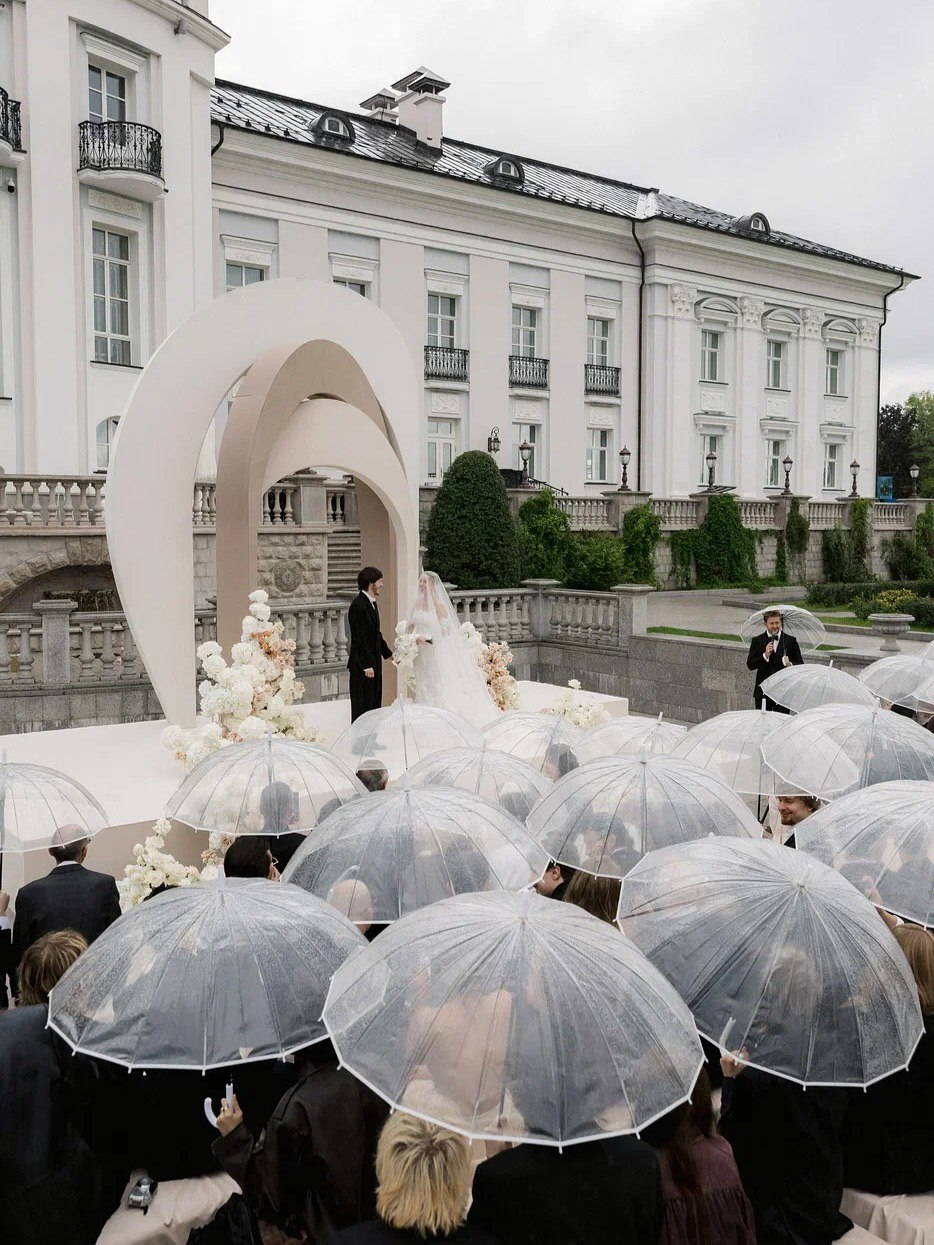 Свадебная церемония прошла в августе 2025 года на Вилле Микетти, одной из самых востребованных площадок сезона. Дождь, начавшийся в самый трогательный момент, сделал её ещё более романтичной.