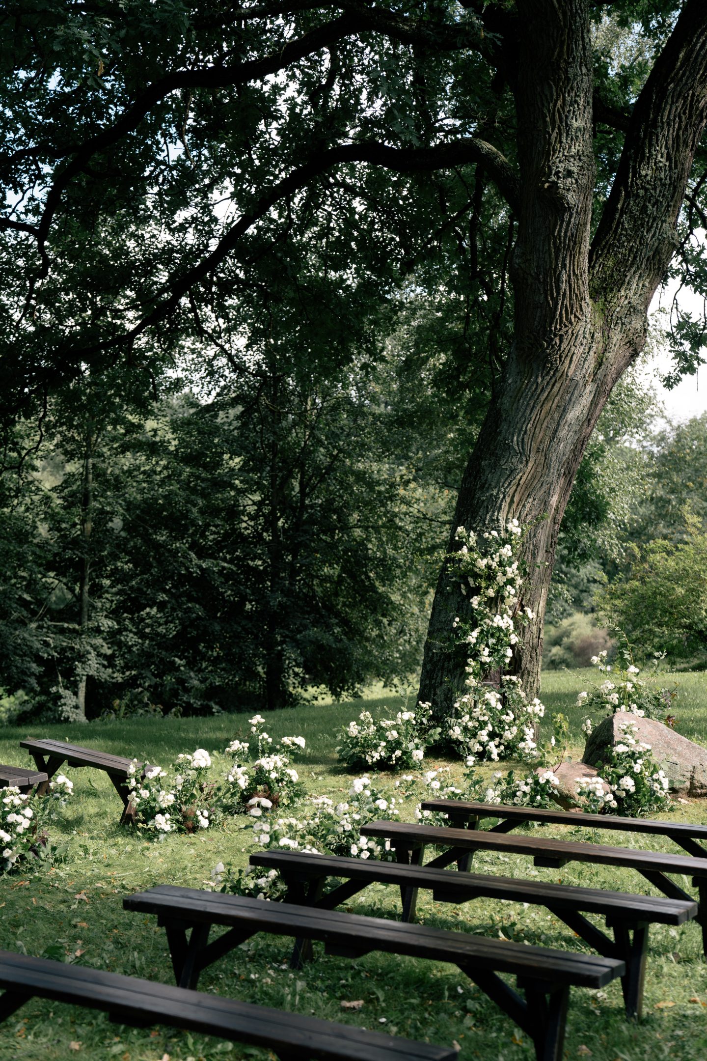 Праздник прошёл летом в историческом месте – замке БИП, который точно отражал концепцию свадьбы, баланс классики и винтажа. В декоре использовались старинные канделябры, кружево, керамические вазы и другие винтажные детали, которые только усиливали атмосферу.