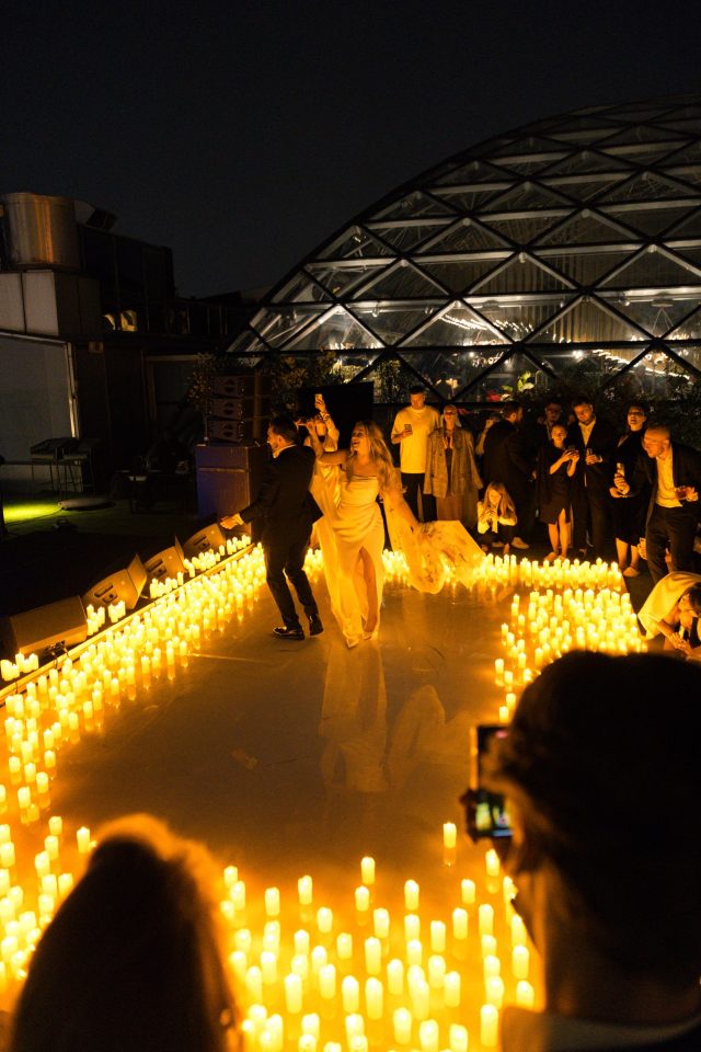 Церемония прошла под песню «Город влюблённых людей» Анны Герман – она задала настроение всему дню и стала его смысловой линией. После клятв гостей ждал интерактивный ужин: к кастомному меню добавили карточки с вопросами о паре, чтобы каждый мог включиться в разговор и вспомнить свои истории.