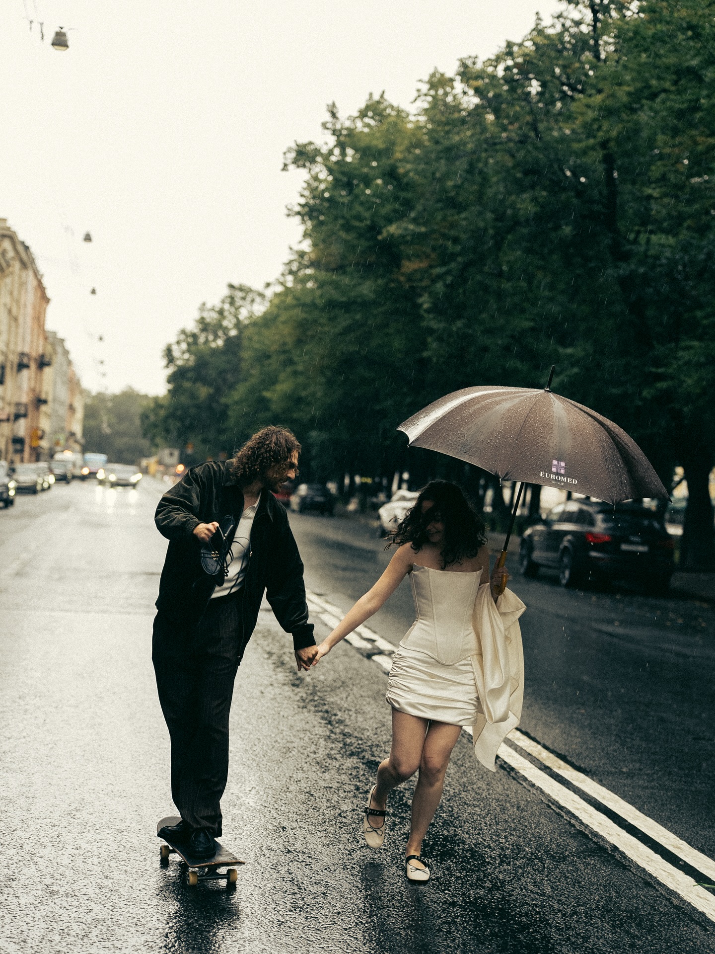 Сюжет, если вы любите путешествия. Взять машину, фотографа, включить любимые песни и поехать, куда глаза глядят. И даже если пойдёт дождь — это 100+ к атмосфере.