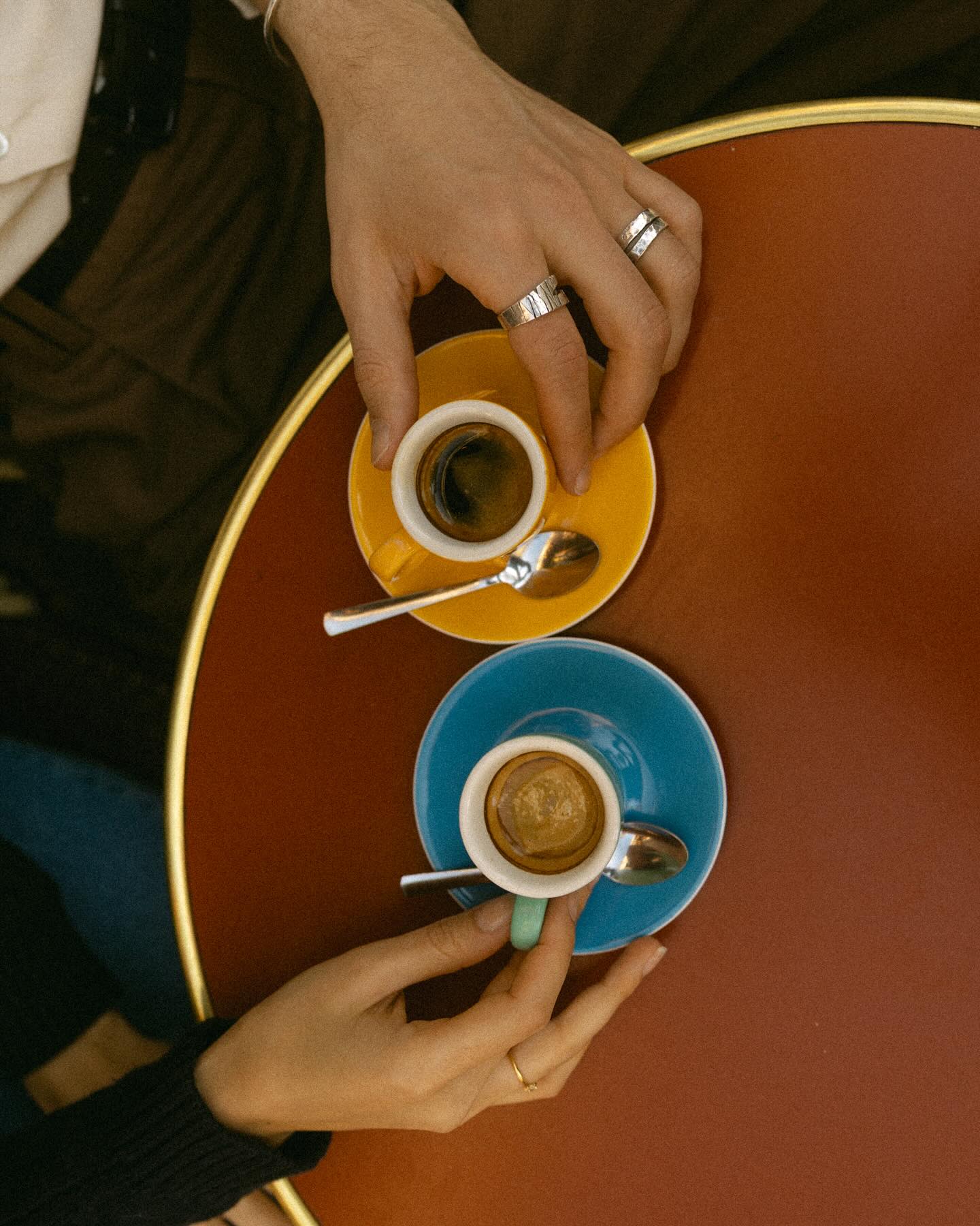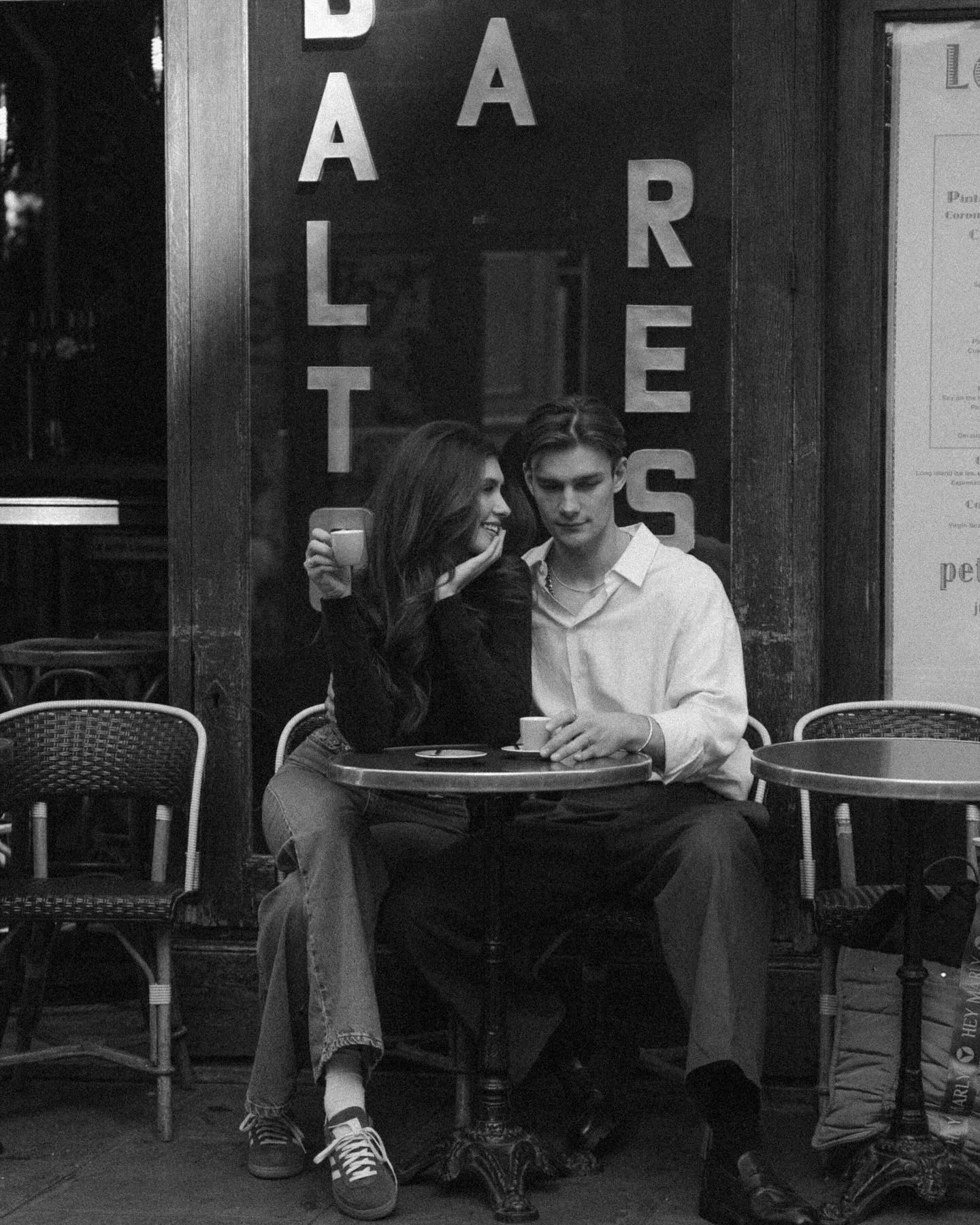 А можно просто пойти в любимое кафе и целовать друг друга в нос. Выбирайте образы, которые сочетаются друг с другом, завтракайте и не обращайте внимание на фотографа. Просто будьте собой.