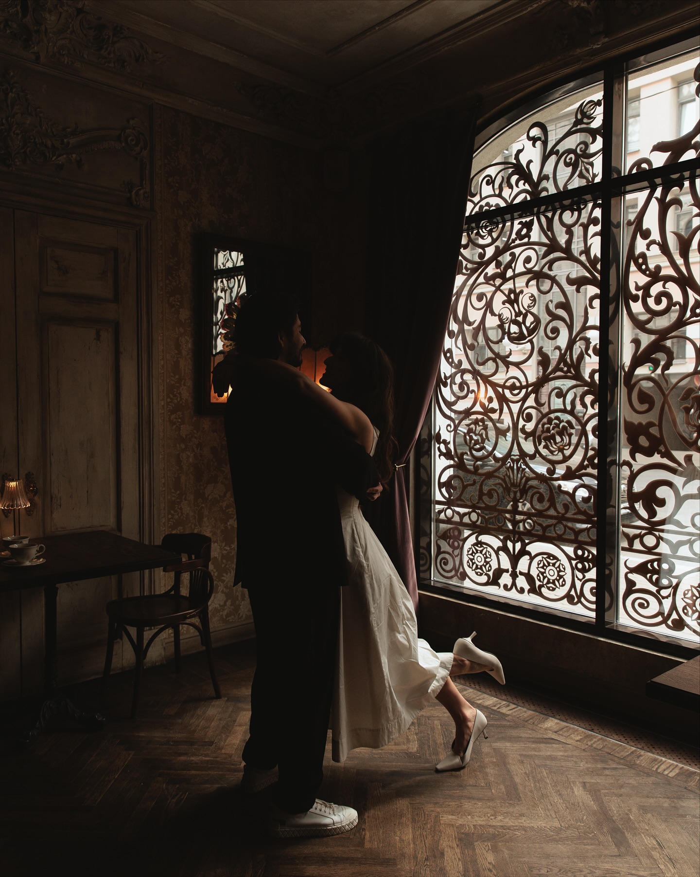 Выбирайте максимально минималистичный интерьер без лишних деталей. Всё внимание вашей паре. Можно буквально поставить один стул или кресло на фоне белой стены и сделать классные кадры только вас двоих.