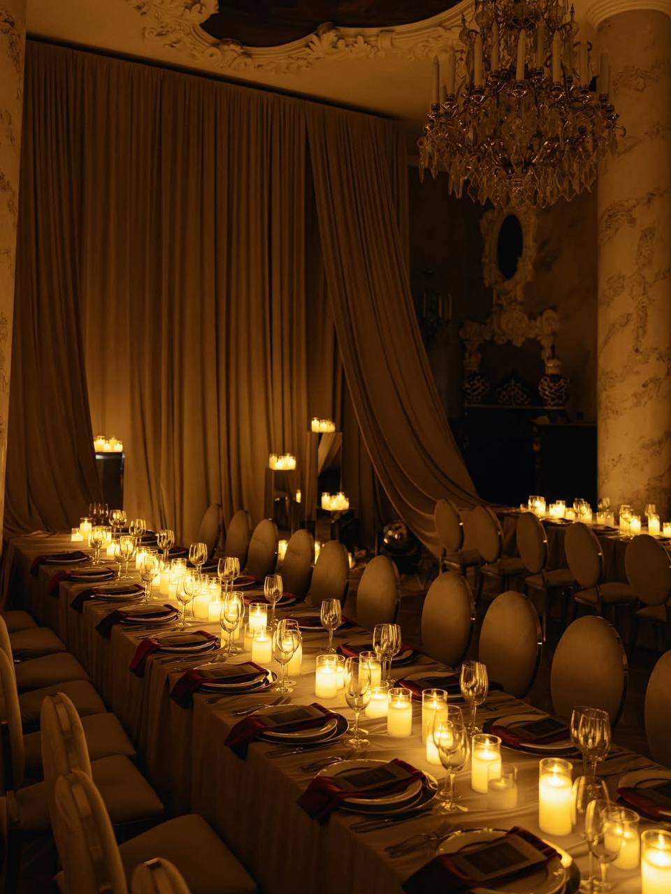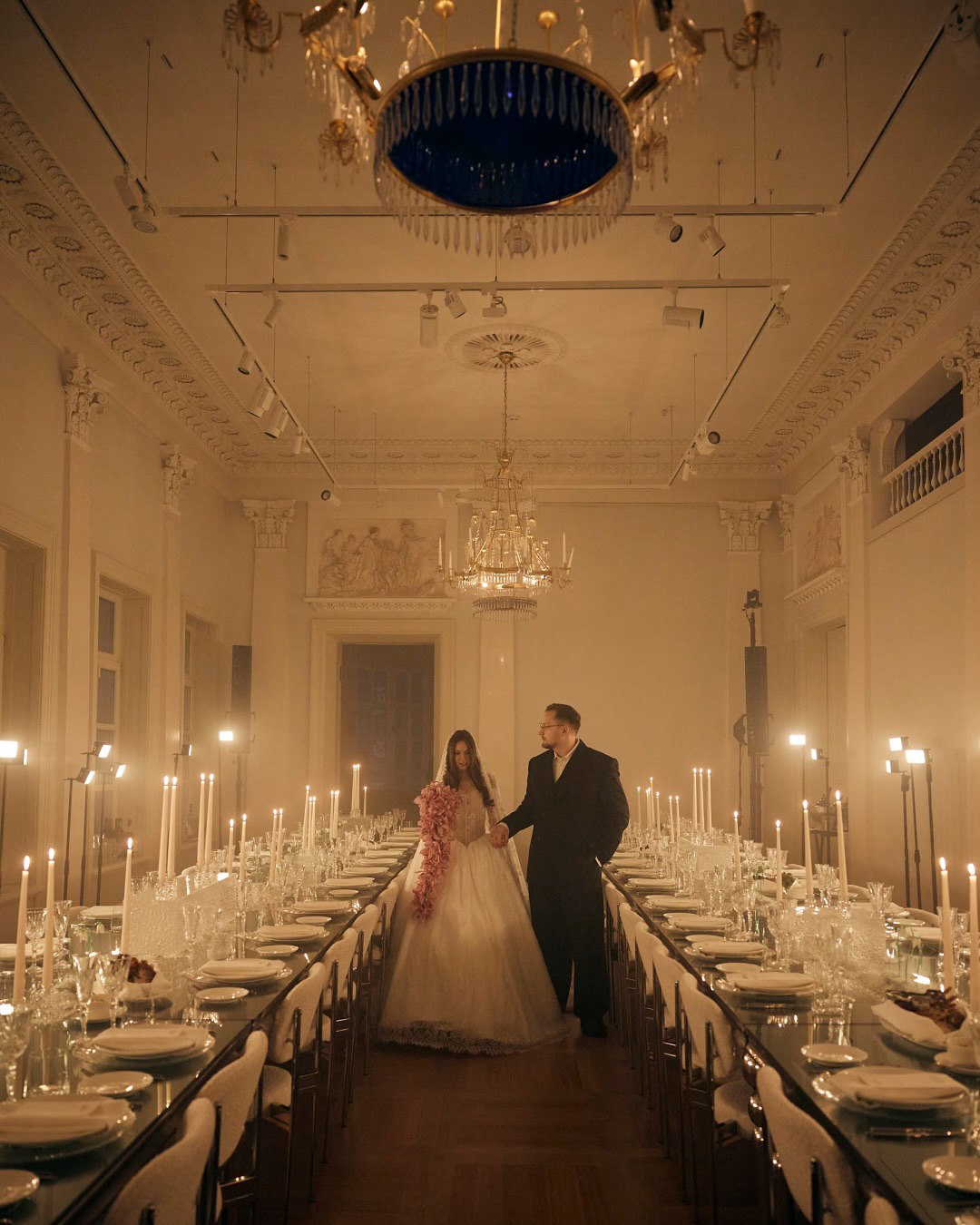 Рассматриваем таинственную свадьбу Шахина и Веры, которая прошла под сводами бального зала с высокими колоннами, величественными хрустальными люстрами в окружении тёплого блеска свечей.