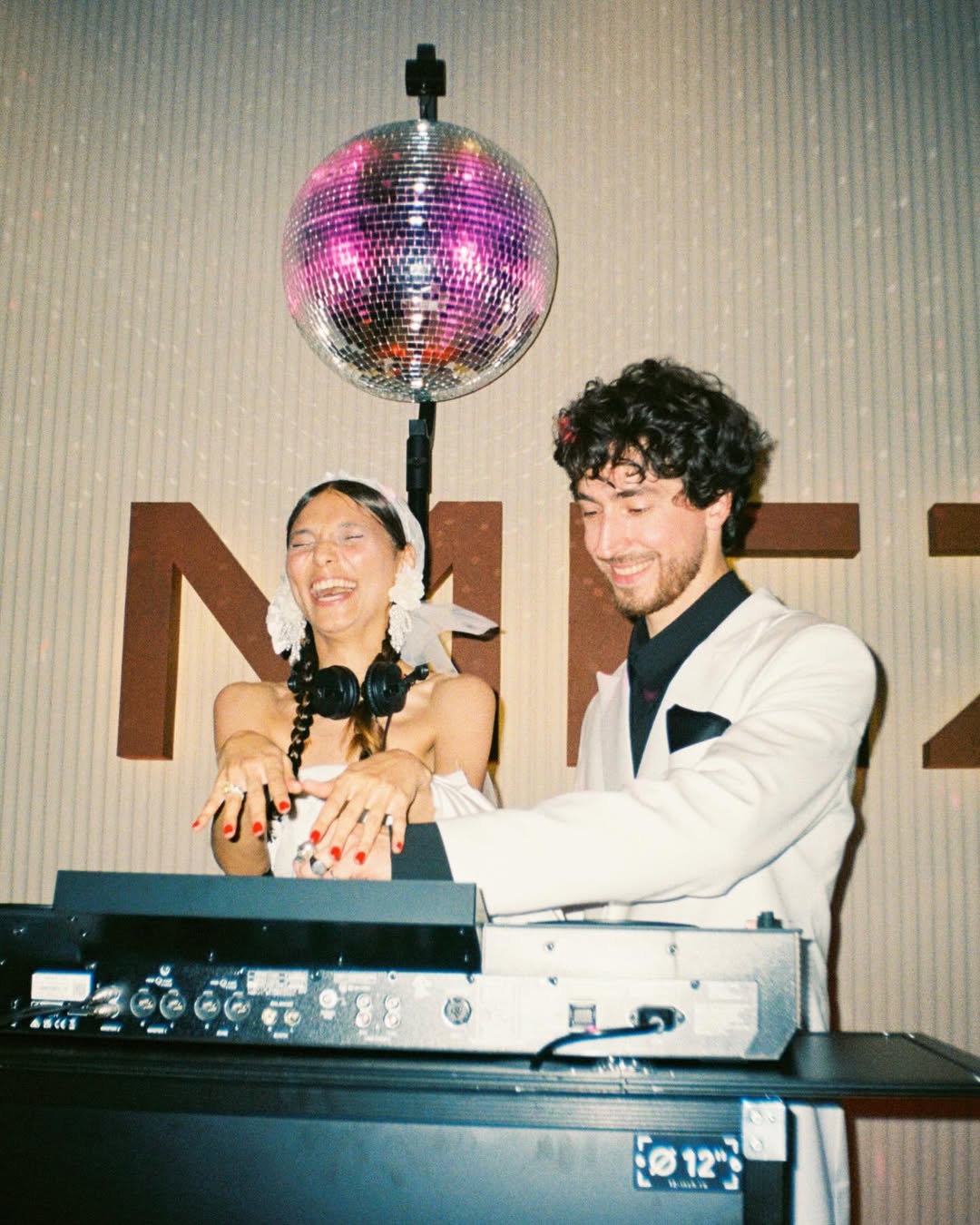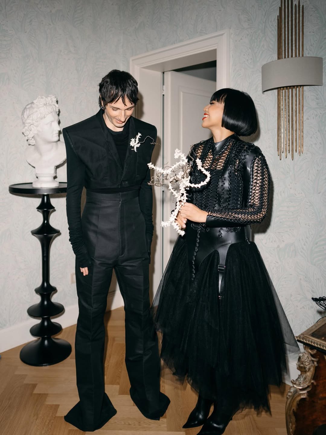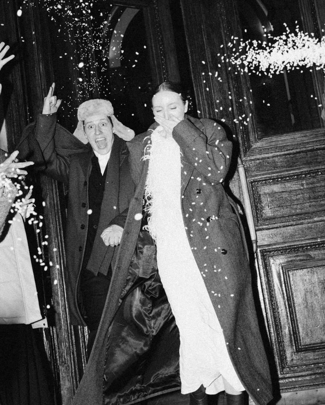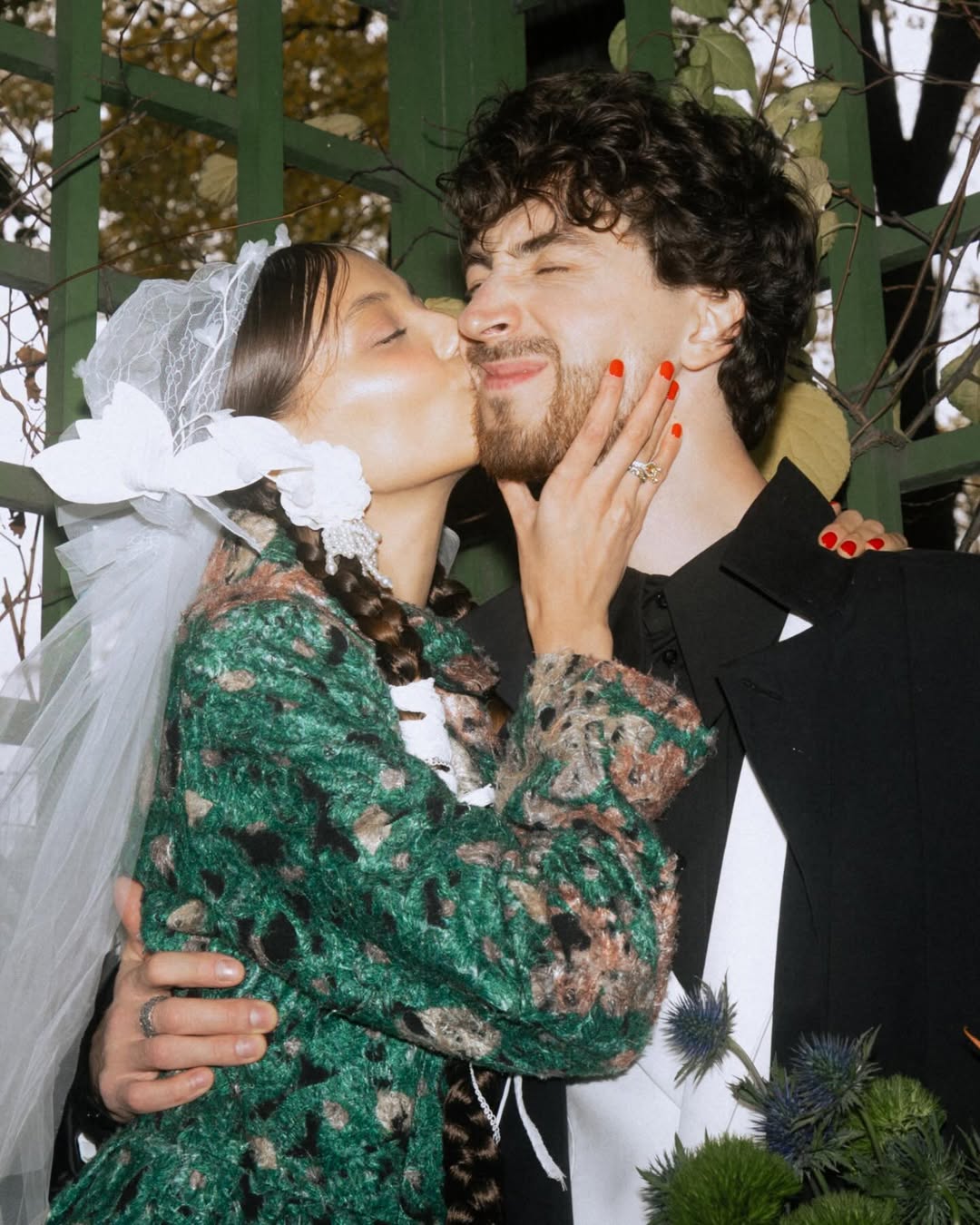 Но больше нас покорили образы пары — необычные аксессуары невесты и почти что театральный наряд жениха.