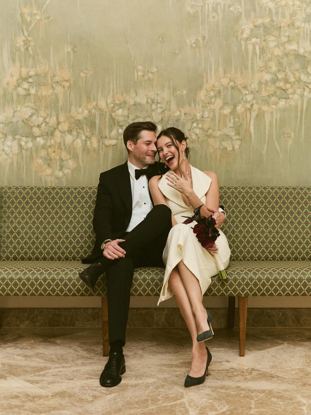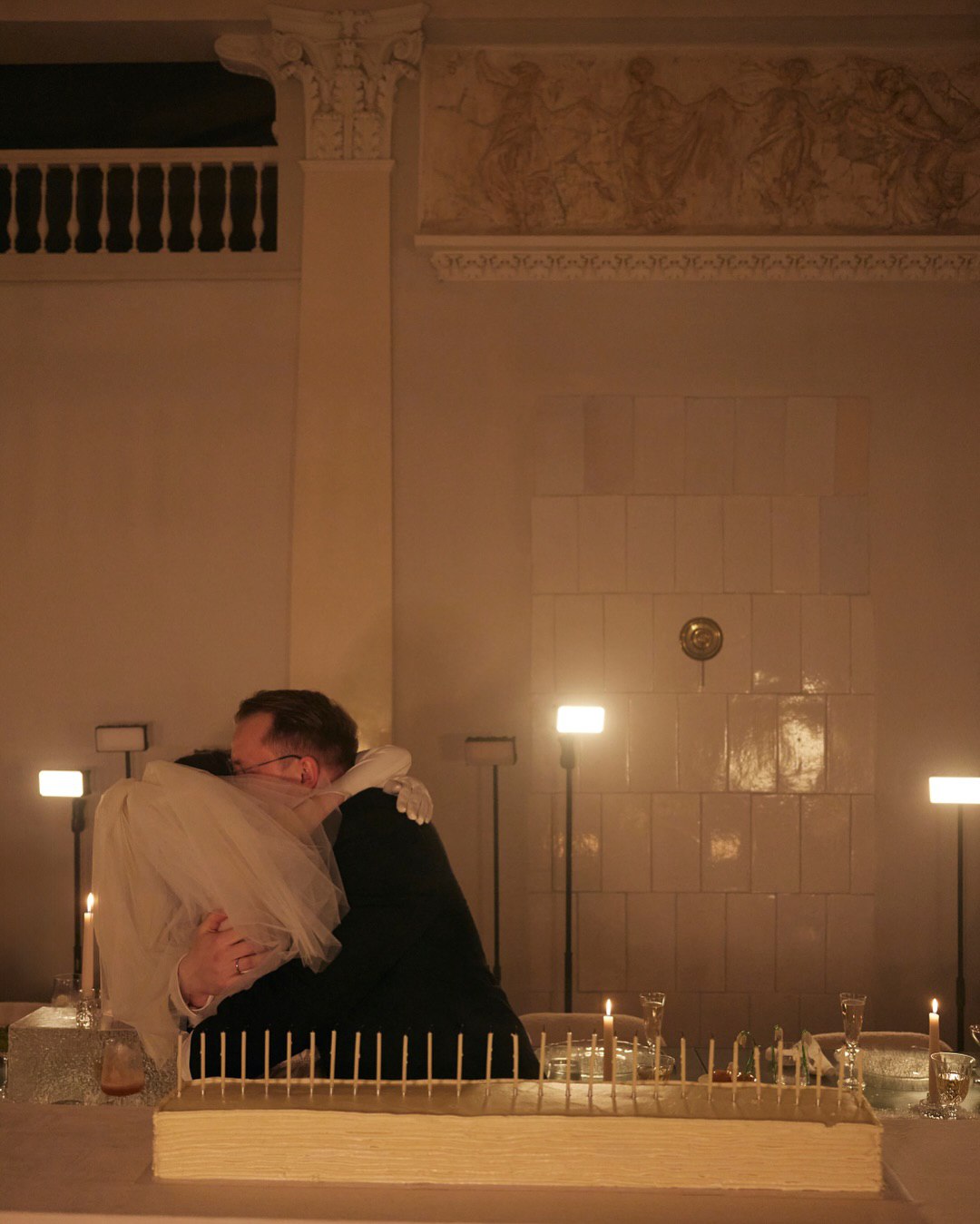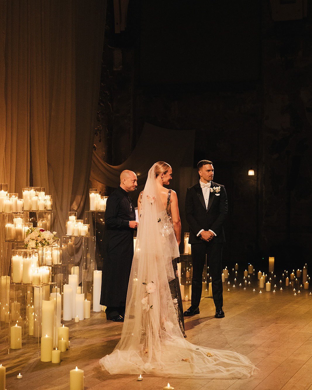 Невозможно не влюбится в эти свадебные кадры в духе old money — здесь идеально всё: классический образ невесты, зимний декор со множеством свечей и белых роз и искренняя любовь, которая чувствуется в каждом кадре.
