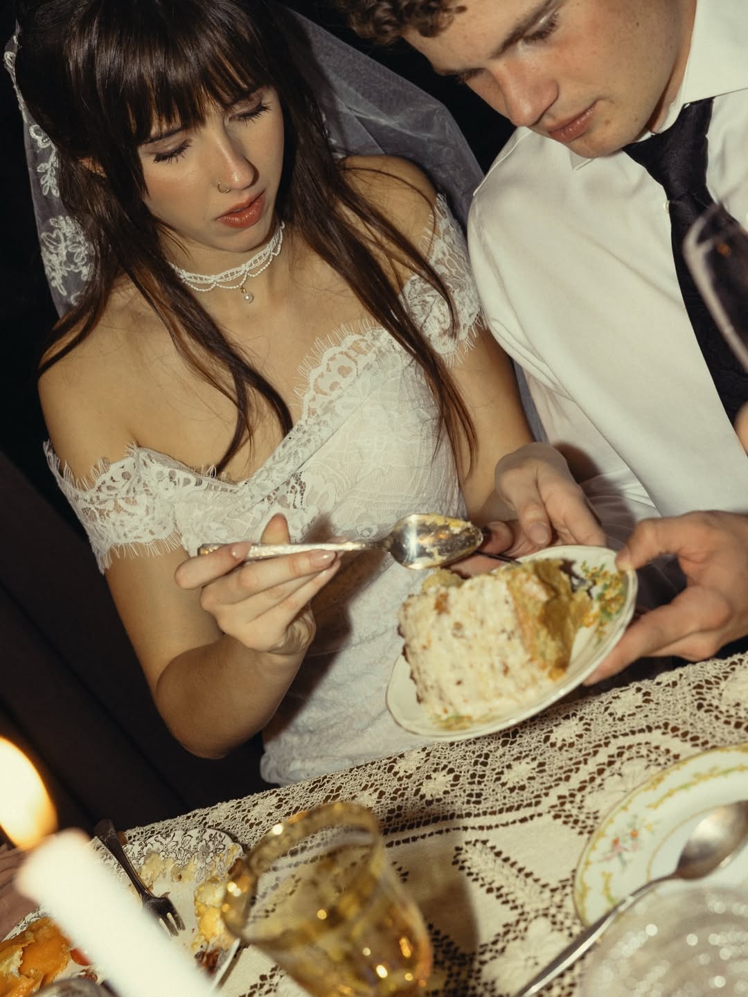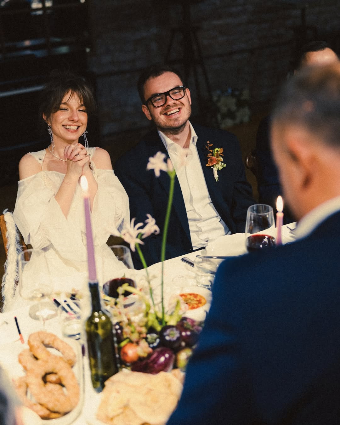 Рассматриваем очень уютные кадры камерного праздника в атмосфере вечеринки — ну какой классный вайб! Особенно хотим отметить невероятное винтажное платье невесты с кружевными вставками.