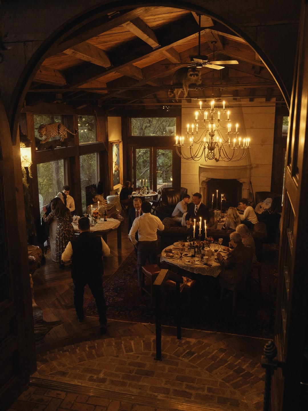 Это очень камерное торжество в кругу самых близких в деревянном коттедже посреди леса, и вся ценность такой свадьбы в уюте, интимности и личной атмосфере.