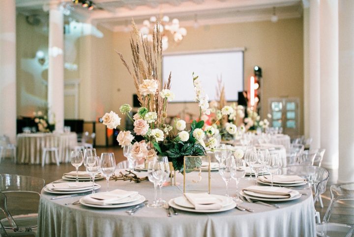 Также у многих площадок зачастую есть комплекты посуды для мероприятий, включая скатерти и текстильные салфетки. Уточни этот момент у банкетного менеджера. Возможно, то, что тебе предложат — идеально подойдёт к стилистике вашей свадьбы.