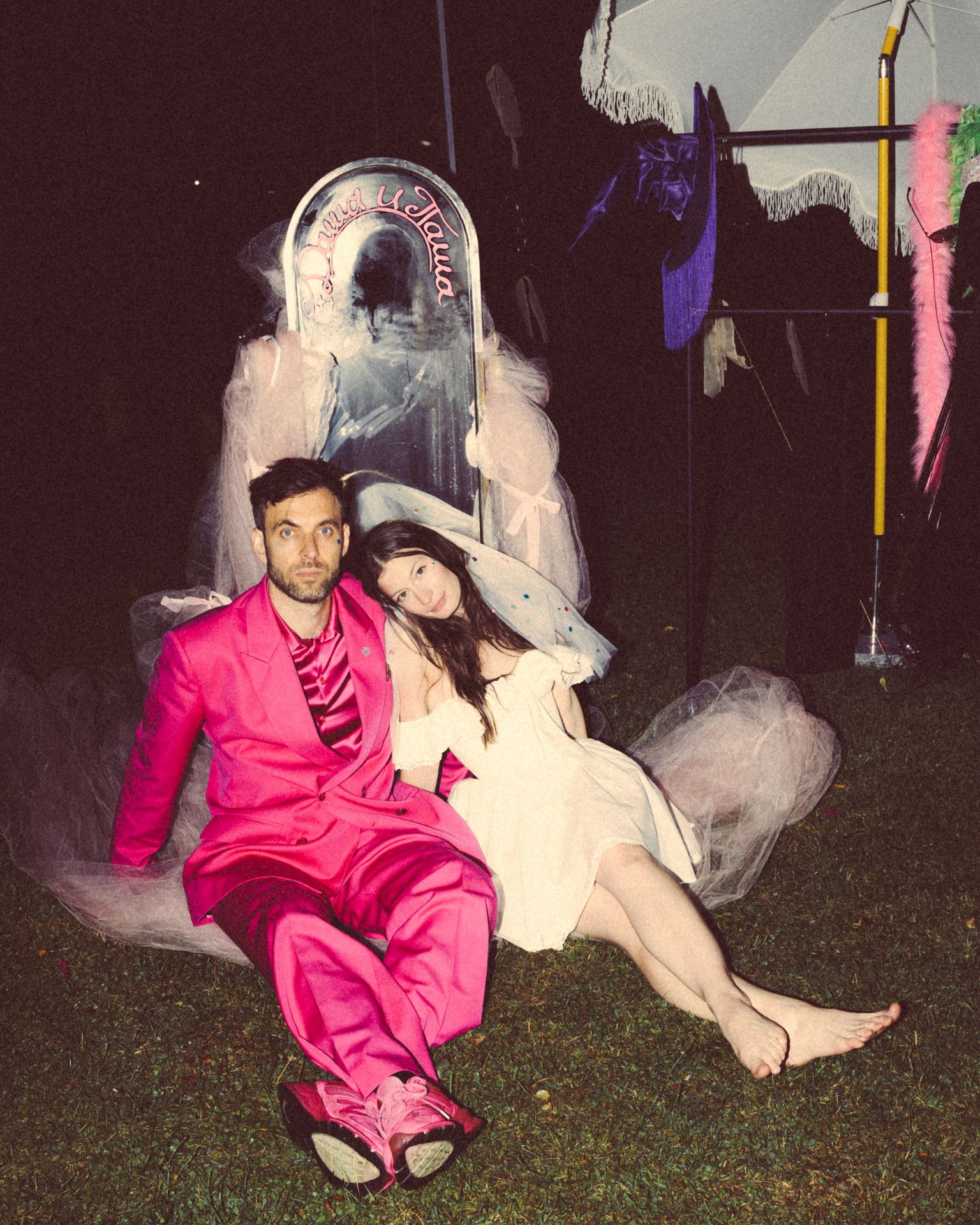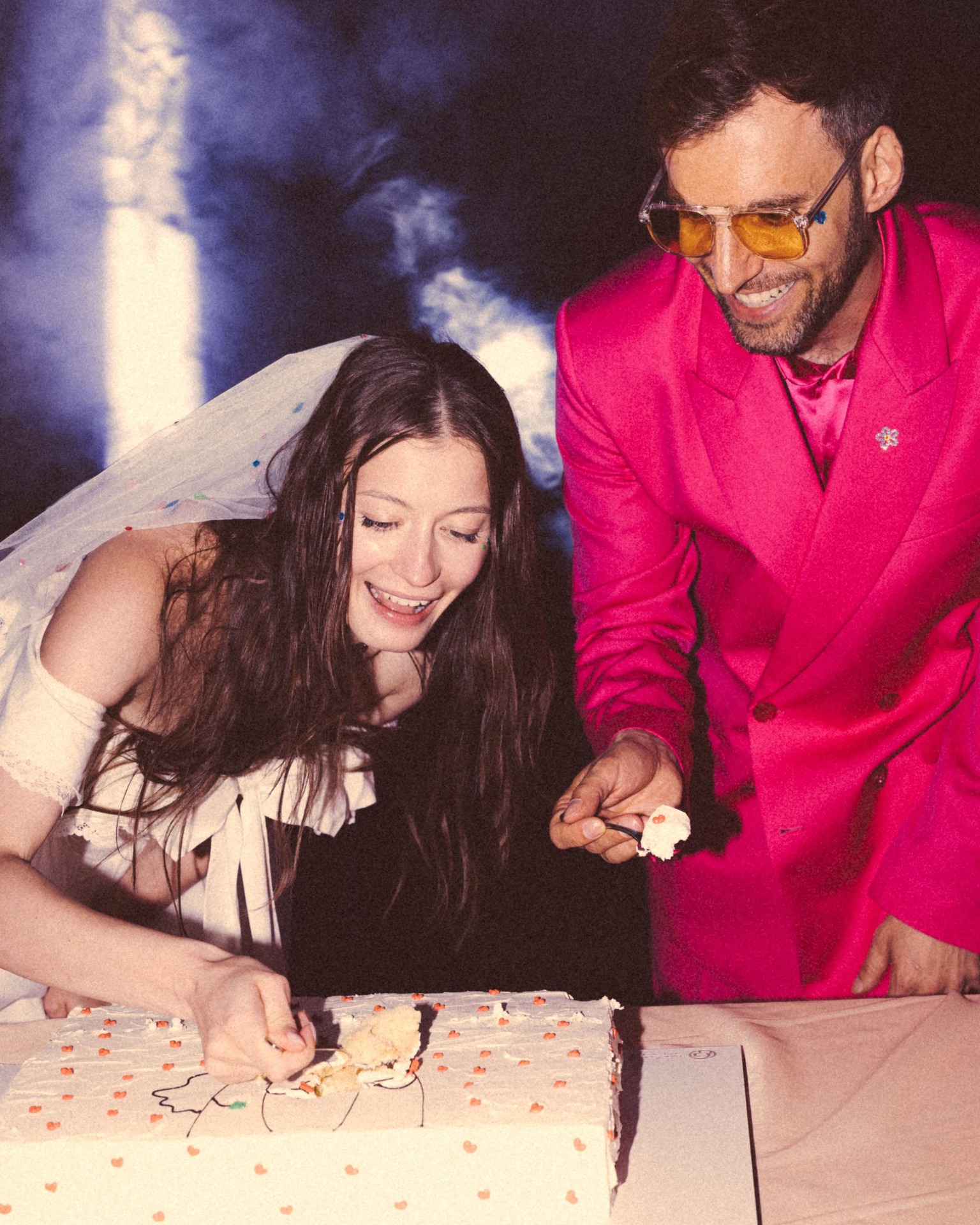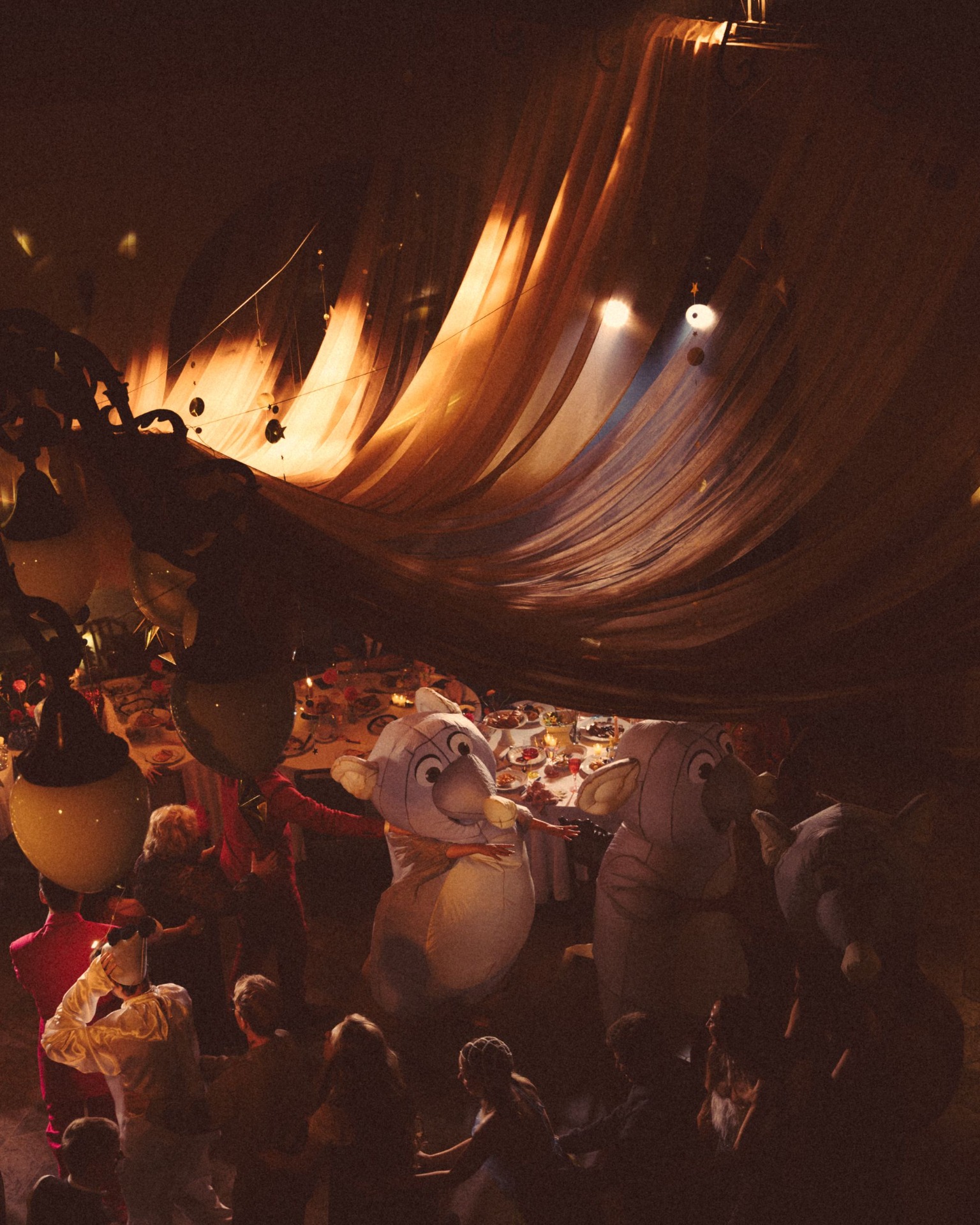 Вторая часть стала эмоциональным контрастом. После того как мы с гостями полежали на траве, включились прожекторы. А дальше началась вечериночная часть: мне хотелось освободить гостей от формального дресс-кода. И они с удовольствием поддержали эту идею! Вдохновившись эстетикой показов YSL, мы построили настоящий подиум с профессиональным светом, лучи которого били в небо. Но цель была не в модном показе, а в обратном — отпустить внутреннего ребёнка и продемонстрировать наряды в стиле «то, что давно ждало своего часа в шкафу». Это было невероятно ярко и энергично! Потом мы обсуждали, что у всех гостей было ощущение, что удалось отпустить своего внутреннего ребёнка и действительно кайфануть.