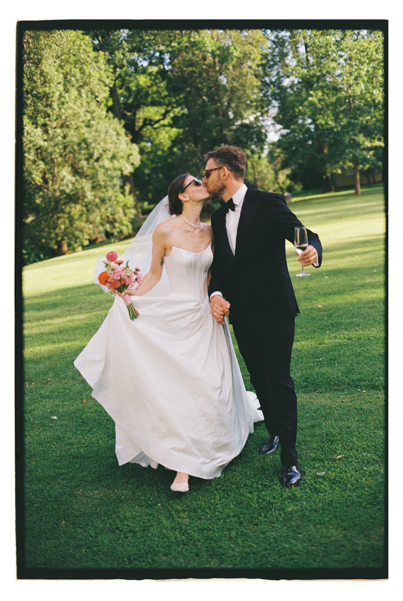 Завершали вечеринку на улице грандиозные танцы, торт, бросание букета со стола. А вернувшись в замок, мы устроили диджей-сет.