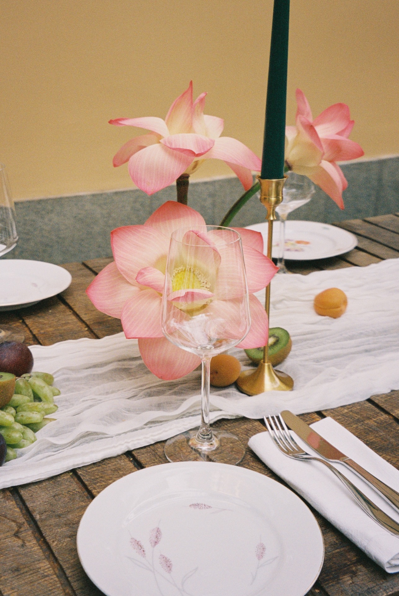 Сочетай живые цветы с фактурными фруктами и овощами. Такой приём придаст декору глубину, объём и лёгкую эклектичность, которая выглядит особенно стильно в кадре.