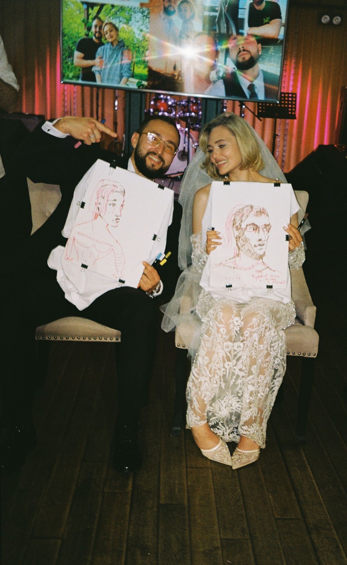 Но есть важный нюанс: рисование занимает время. На велкоме довольно быстро образуется очередь, а в процессе мероприятия гости уже менее охотно подходят. В итоге большая часть гостей просто не успевает получить портрет. Формат классный, но нужно понимать, что не все получат памятный подарок, а кто-то из гостей из-за этого может остаться недовольным.