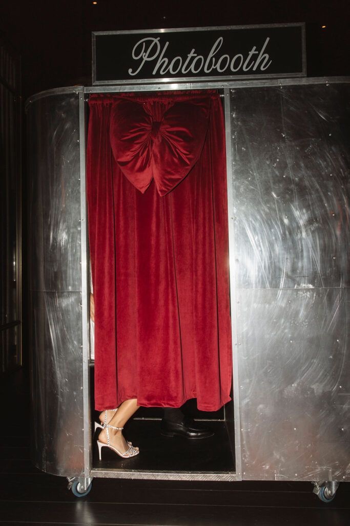 Фотобудка на свадьбе особенно хорошо работает в начале банкета — в тот момент, когда гости только собираются, осматриваются и ещё не до конца понимают формат вечера. Она быстро становится точкой притяжения и помогает снять неловкость: гости постепенно включаются в процесс, знакомятся друг с другом и начинают взаимодействовать.