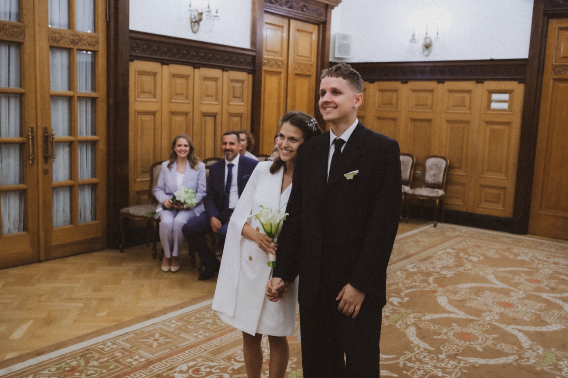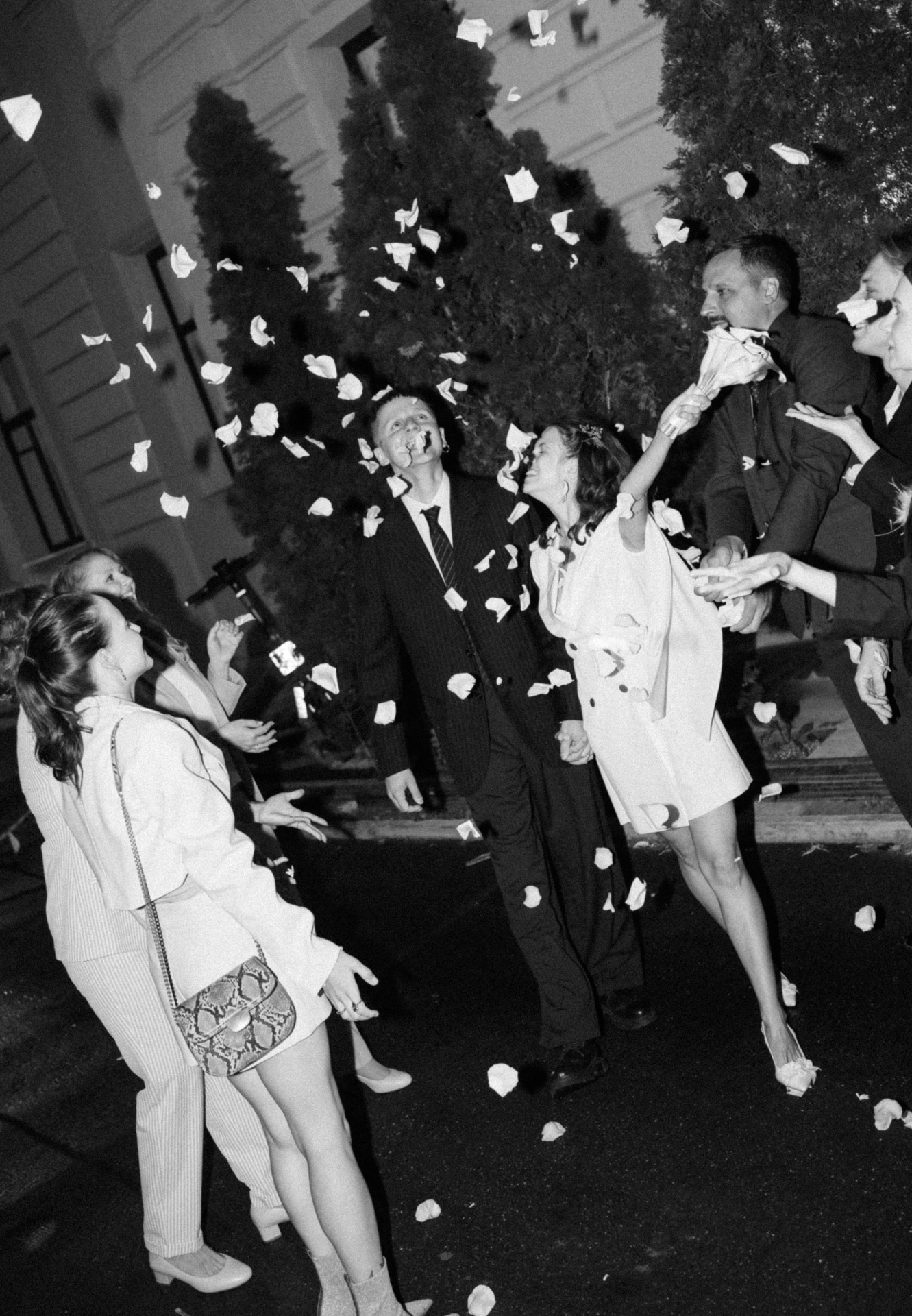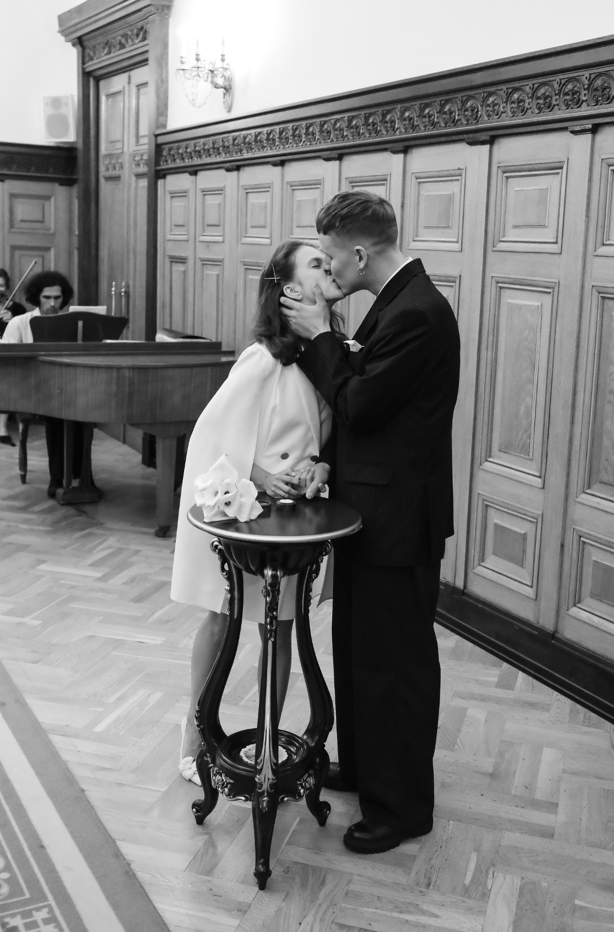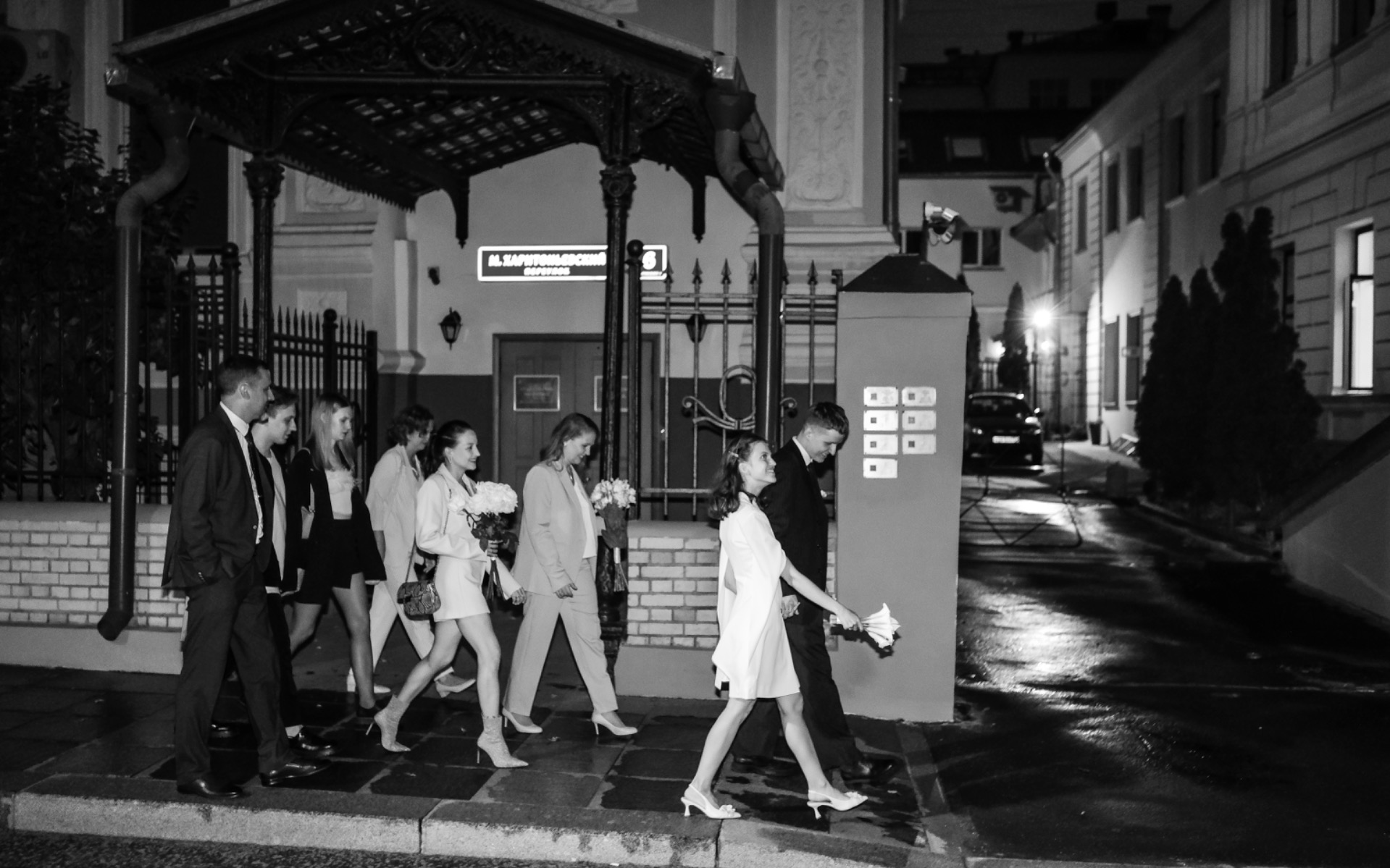 Дата тоже была выбрана не случайно — 16 августа, ровно через пять месяцев после предложения. Мы мечтали о красивой исторической регистрации, и Грибоедовский ЗАГС с его вечерними церемониями стал идеальным местом.