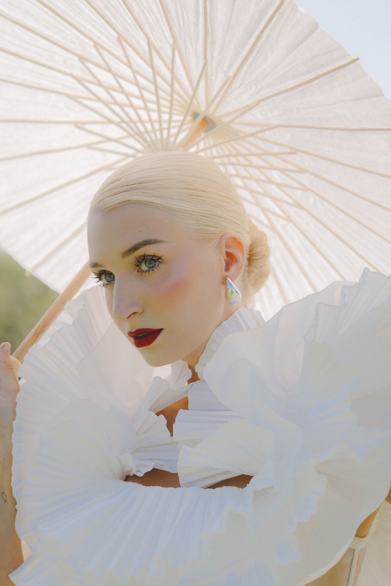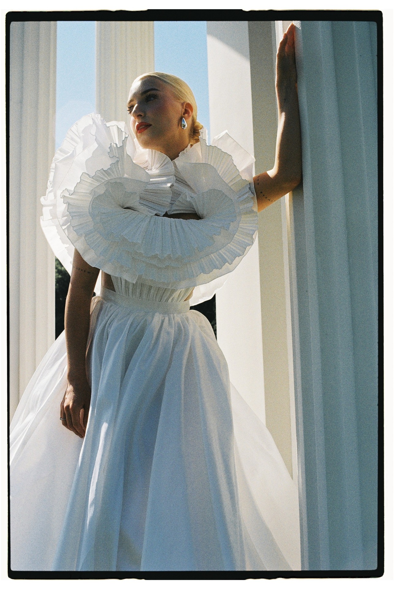 Мой образ был дополнен красной помадой, низким пучком и любимым каффом. Подруги единогласно поставили моему наряду 10 из 10. Он напоминал мне Белую Королеву и сценический образ Леди Гаги. Туфли я искала долго, но в итоге нашла свои белые таби с широким каблуком.