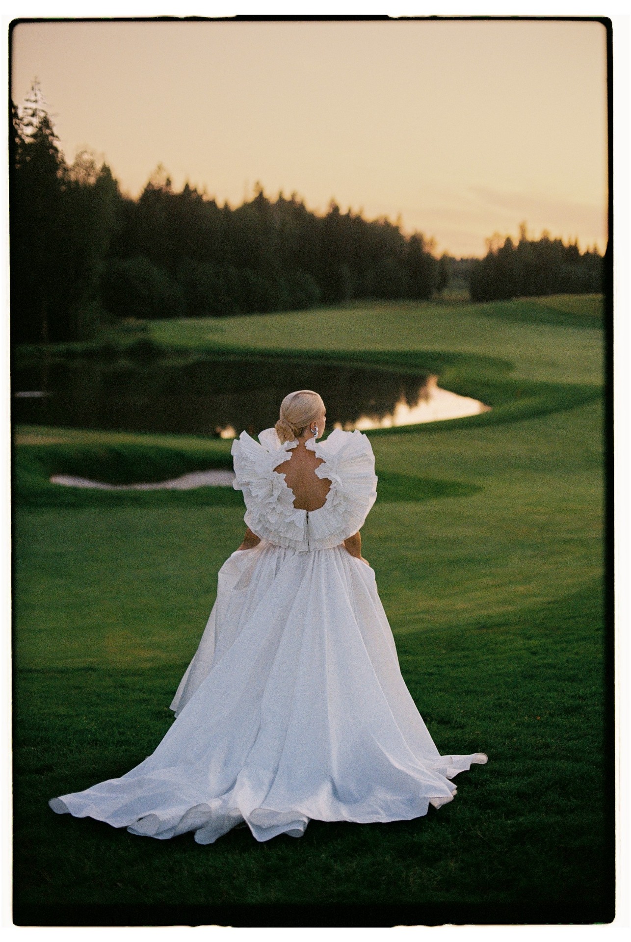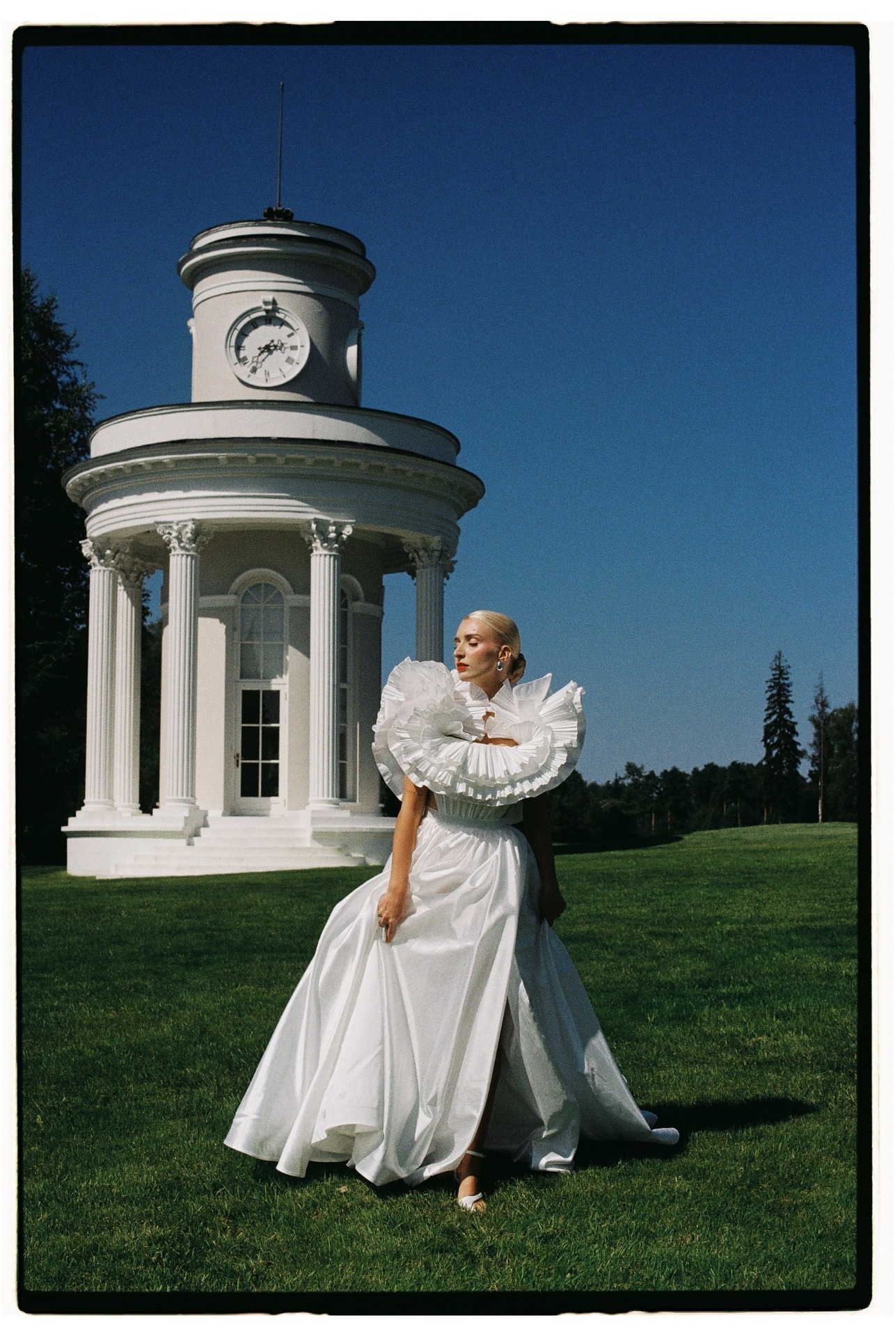Я нашла платье почти за год до свадьбы, в первом же салоне. Ошибочно надела его иначе, чем задумано дизайнером, и это стало решающим фактором: мне очень понравилось носить его именно так.
