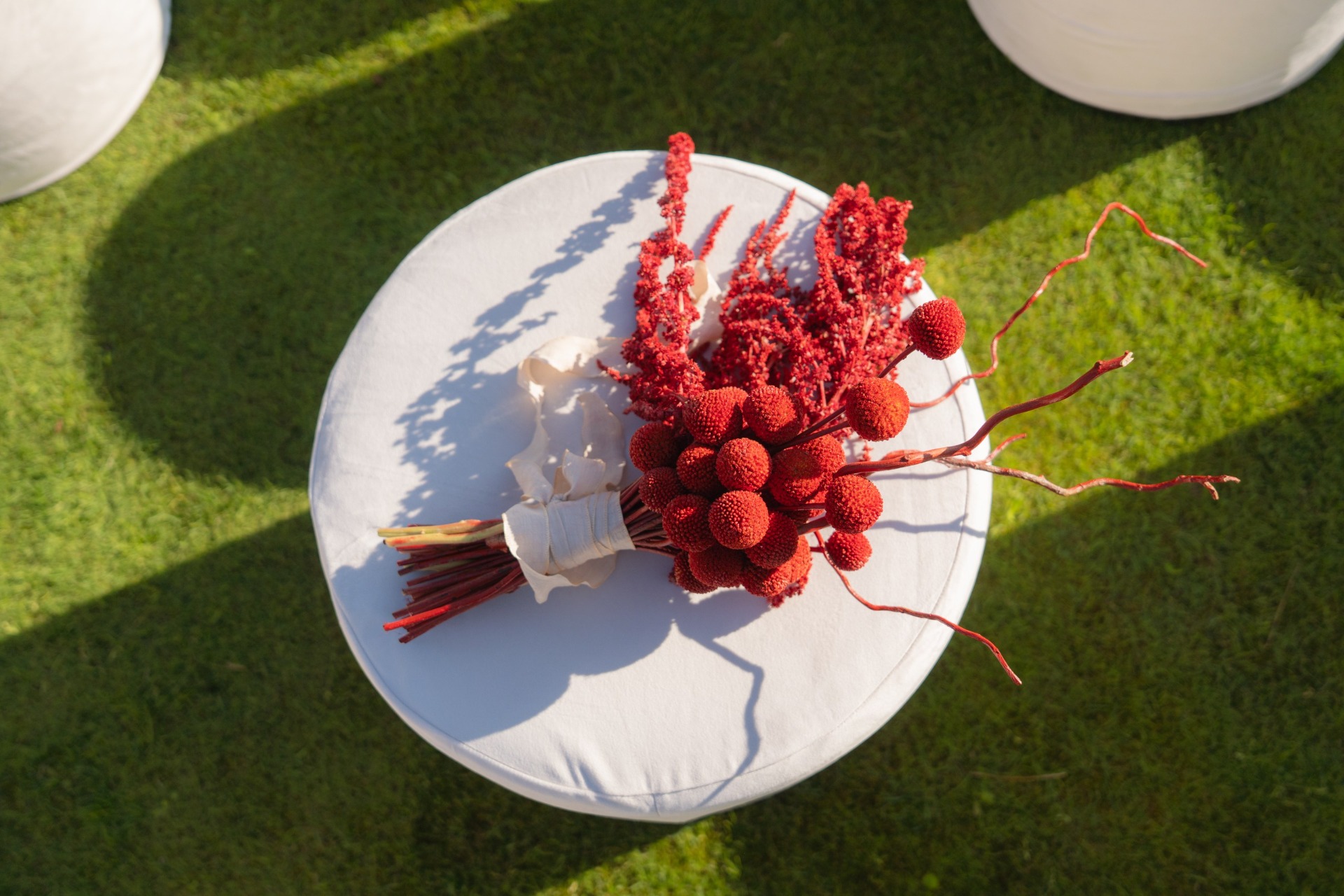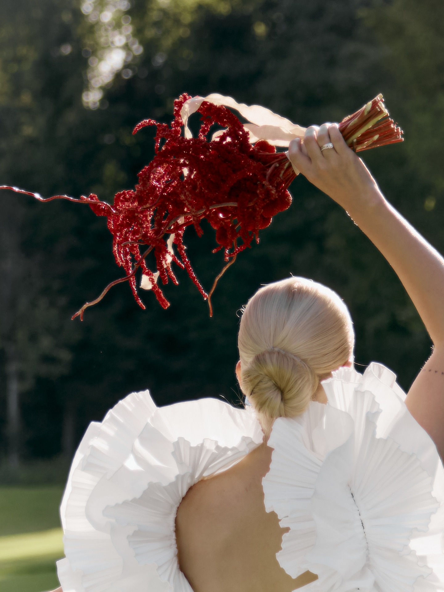 Цветовая гамма тоже сложилась сразу: всё белое и акценты красного — от флористики до моей помады, которая всегда со мной, даже в горах.
