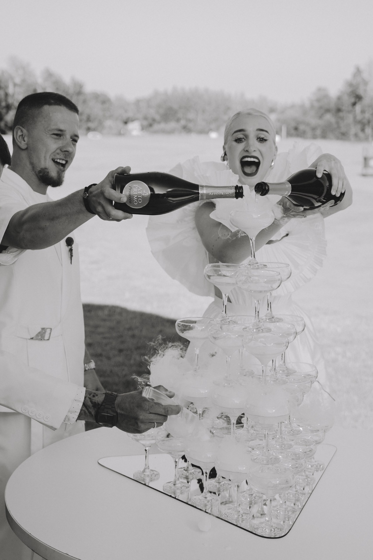 Я ни о чём не подозревала в течение вечера: сидела, наслаждалась выступлением иллюзиониста. Как вдруг Денис наклонился ко мне и спросил: «А ты видела видео, как свадебный торт развалился и его вынесли в зал в мусорном мешке?» Пока мы отдыхали, наши координаторы сумели спасти торт! Это тоже стало одним из самых ярких воспоминаний вечера, потому что для меня это — настоящая магия свадьбы от организаторов!