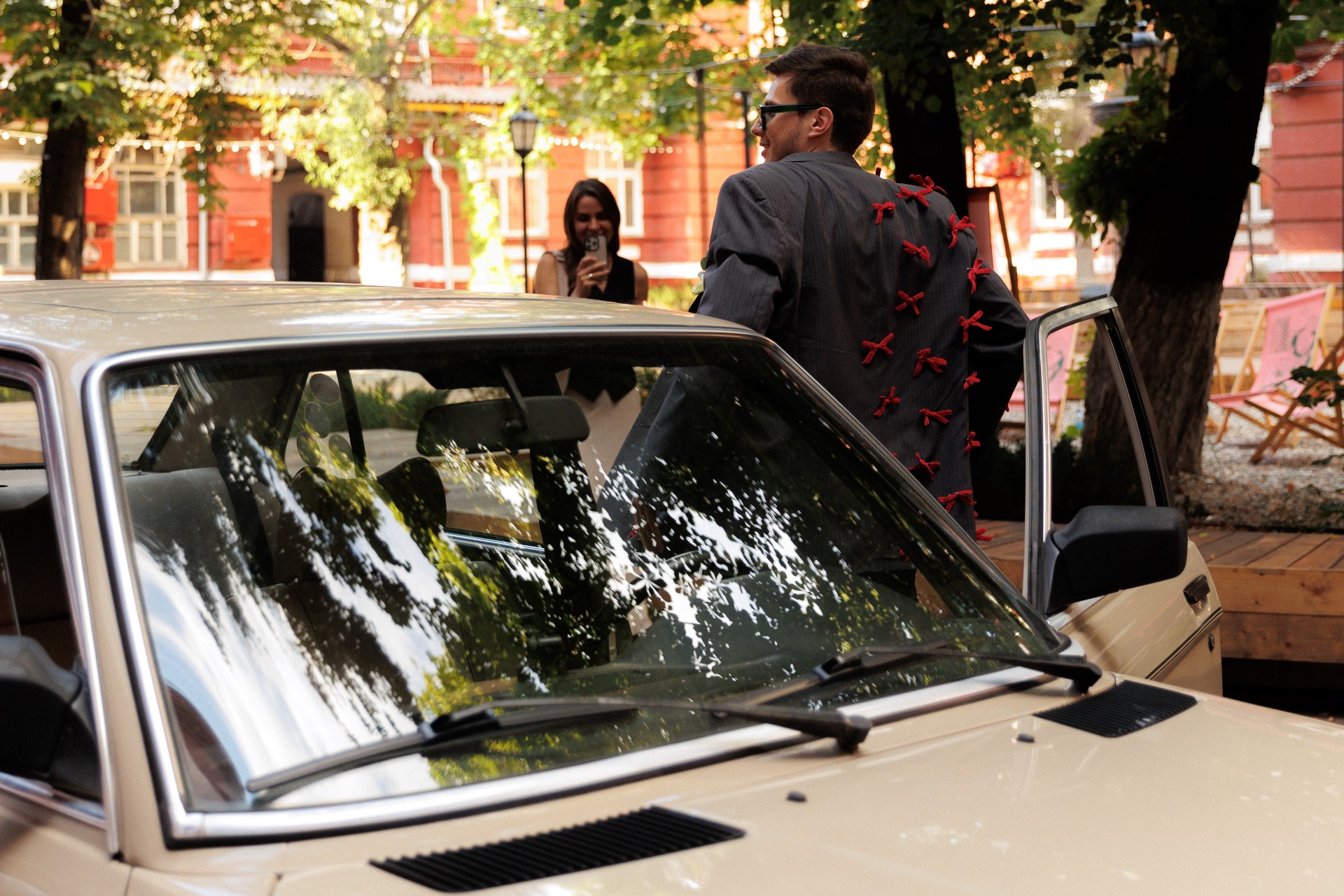 Из интересного — Серёжа арендовал сюрпризом бежевую BMW E28, на ней мы колесили по Москве следующие 2 дня. Одним из лучших решений было остановиться в отеле у Дома музыки. В рамках свадьбы в несколько дней это крайне удобно: сборы, визажист, отдых — всё в одном месте.