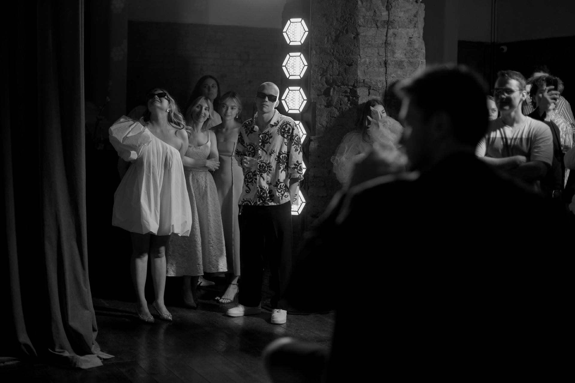 Подготовка началась в апреле, за 3 месяца до дня X. Основная сложность, как и у многих в летний сезон, была связана с поиском места. Нам повезло — наши организаторы нашли локацию, которая была на этапе перестройки: Кристалл 1901 – пространство в корпусе исторического ликёро-водочного завода, что стало забавным фактом для свадьбы. Мы рискнули и забронировали эту площадку на 20 июля. Дальше всё было просто.