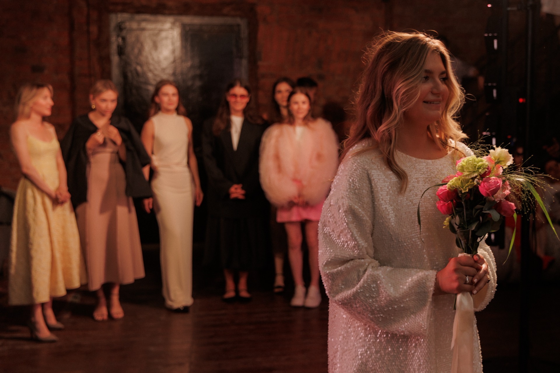 Традиционных клятв не было — друзья их писали за нас. Одну традицию мы всё-таки оставили — это было бросание букета.