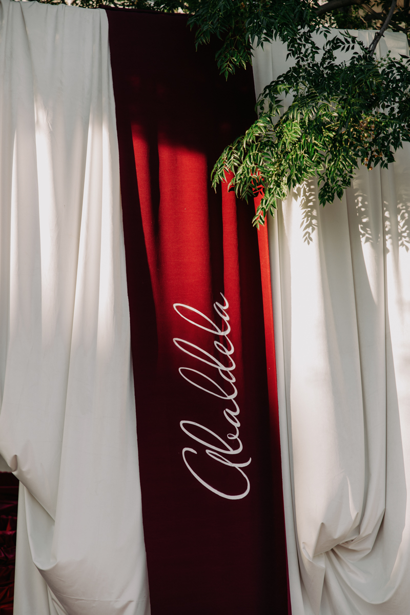 Самым ярким моментом декора стало раскрытие винных тканей в апогее церемонии, на которых были написаны слова «Abaldel» и «Abaldela».