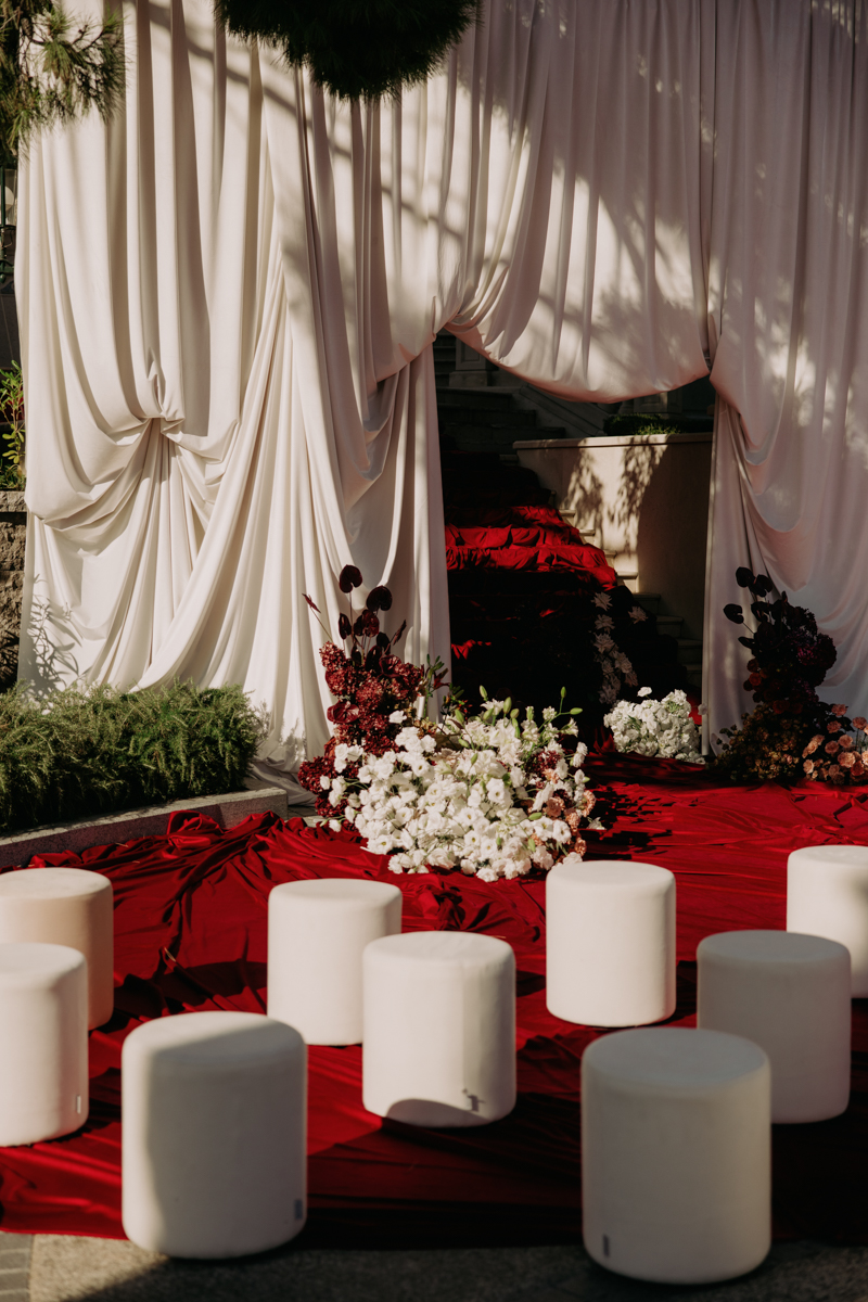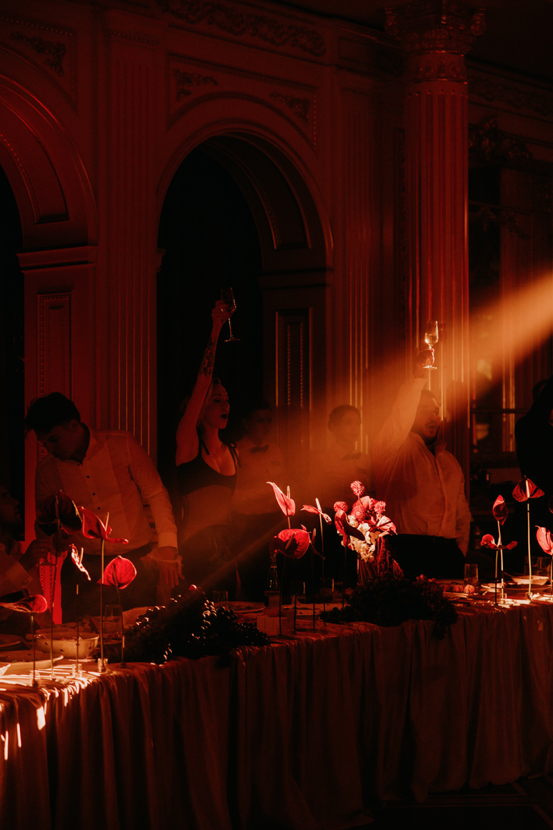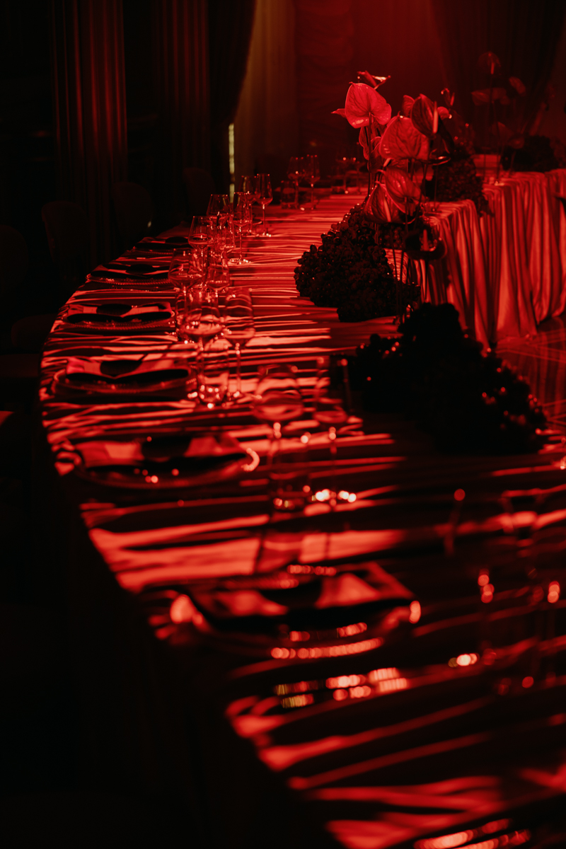 Именно такую реакцию приглашённых можно было наблюдать на их лицах с самого первого взгляда на площадку, на каждый элемент декора, стиль, церемонию и ужин. Это не про скромную элегантность — это про вау-эффект, про грани роскоши, которые зашкаливают, но при этом остаются утончёнными.