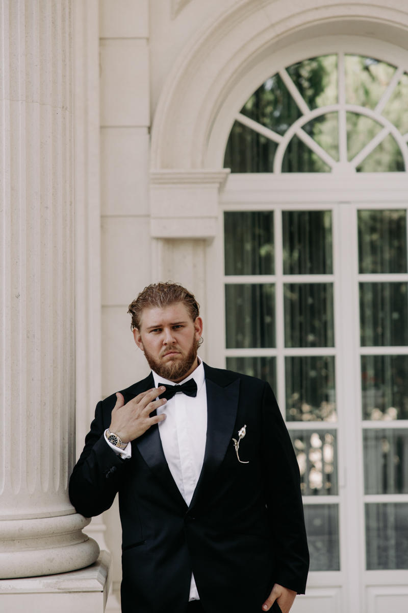 Образ Владимира был сдержанным: смокинг и лаконичная металлическая деталь.