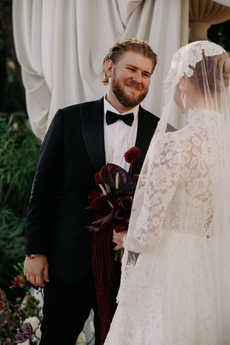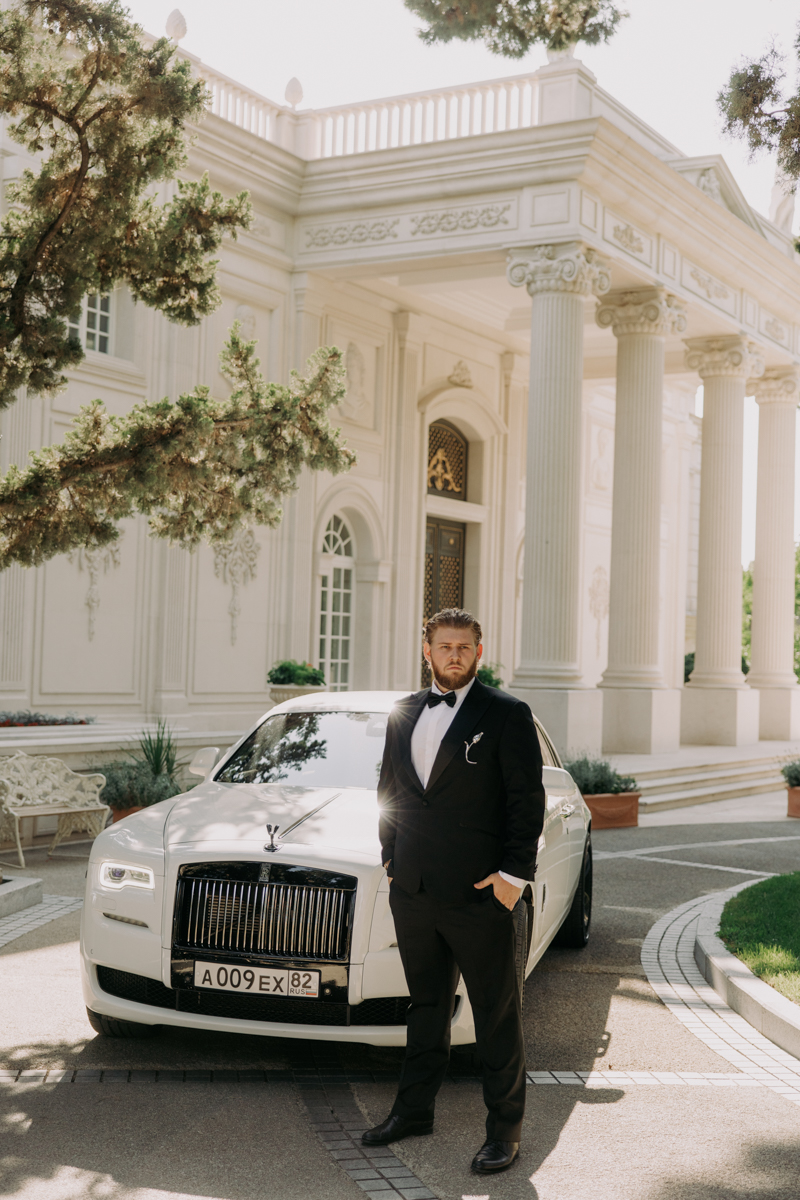 Свадьба прошла на роскошной вилле «Нимфея» в отеле «Крымский бриз». Все гости безупречно поддержали дресс-код и пришли в чёрном.