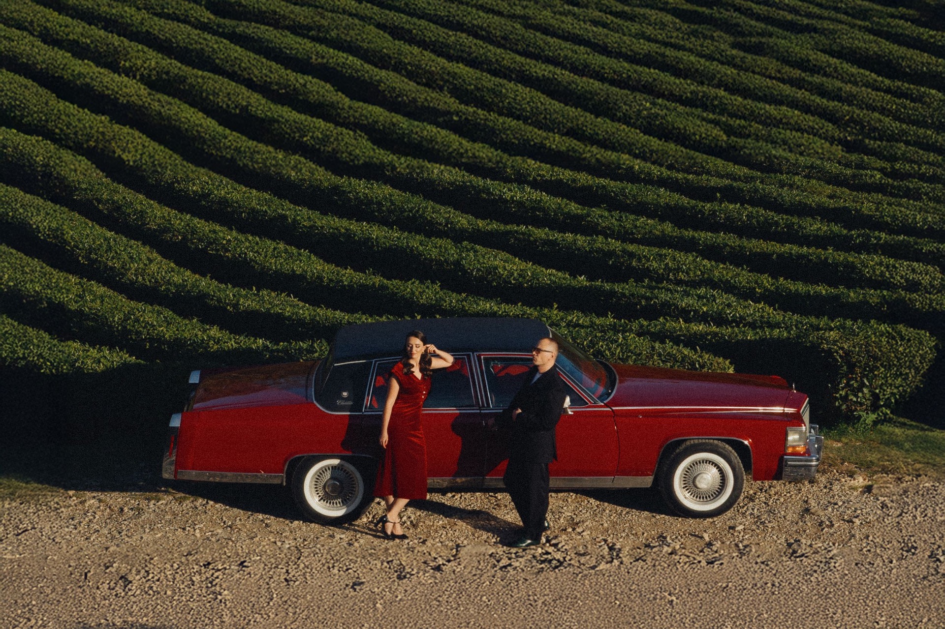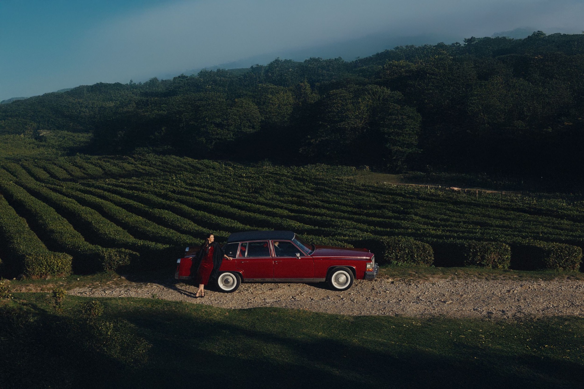 Внизу отеля нас с мужем ждал винтажный Кадиллак с красным салоном, на нём мы добирались до места фотосессии, чайных плантаций. Возле плантации стояли вагончики киностудии — в тот день я бы уже не удивилась, если бы они снимали нас. Я чувствовала себя звездой в самой настоящей сказке.