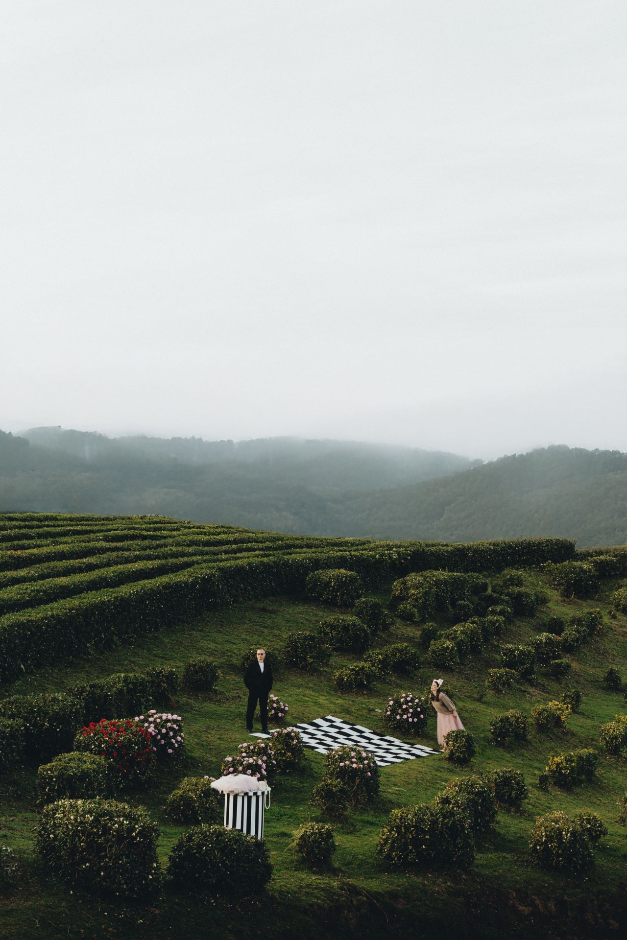 Наш Кадиллак заехал на плантации: «лабиринты» из чайных кустов, загадочная дымка, уже осенние горы и мягкий солнечный свет. А затем мы увидели кустовые розы, чайный сервиз на столике и чай — уголок «Алисы». Точно ли не пробегал белый кролик здесь?