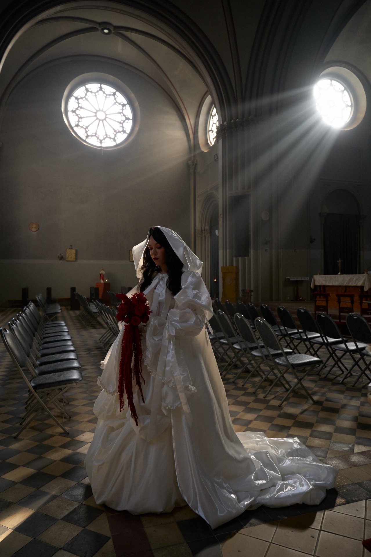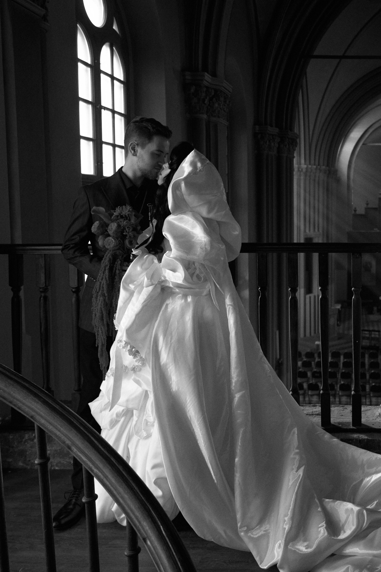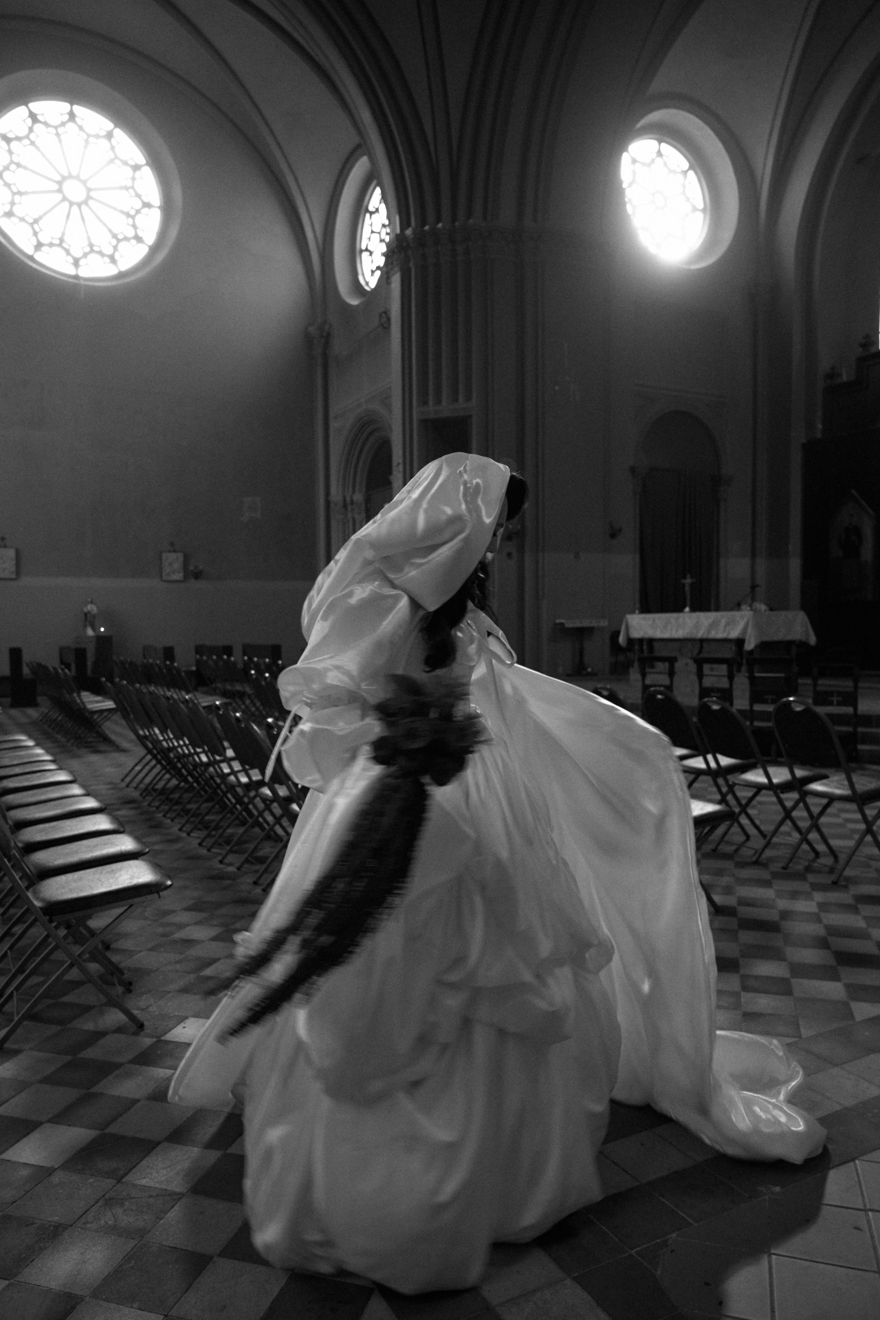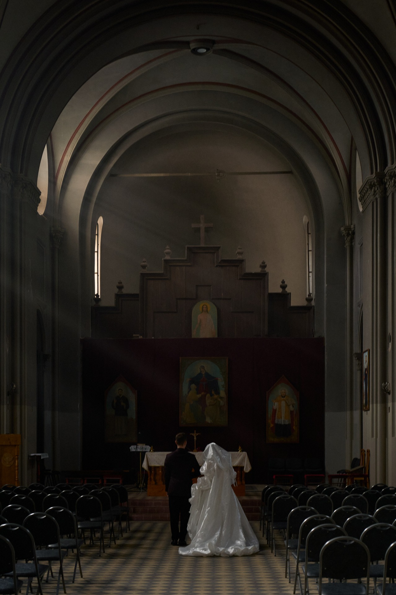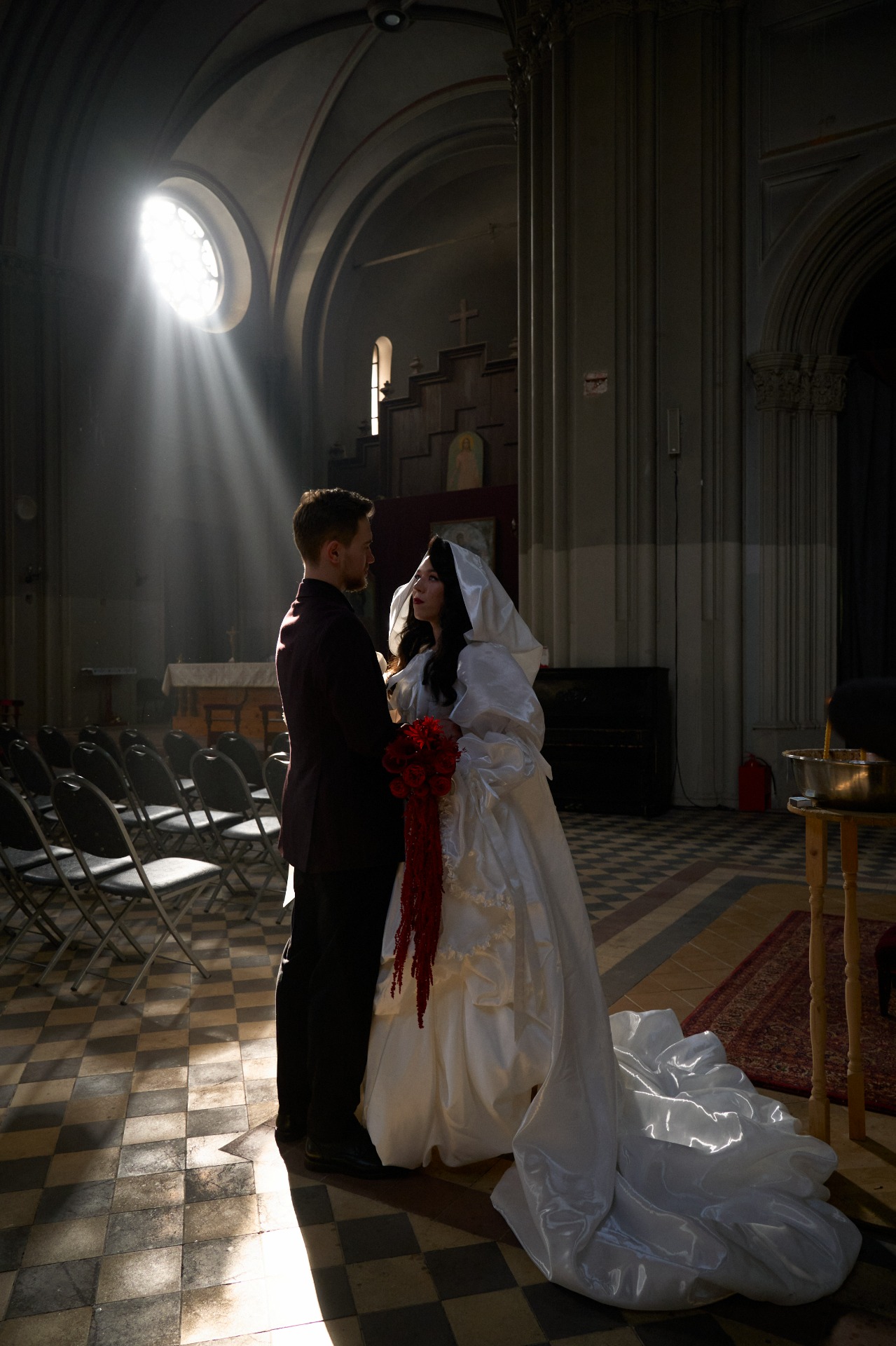 Нам особенно запомнилась фотосессия днём в церкви, где уходящее и появляющееся солнце помогло сделать восхитительные кадры с лучами и витражным светом.