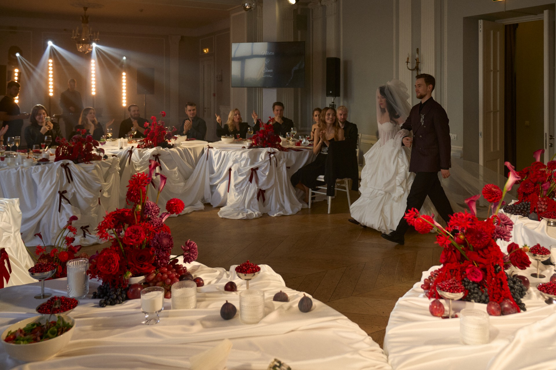 Выбор площадки стал особенной историей — особняк Путилова покорил нас с первого взгляда, заставив пересмотреть бюджет. Мы с лёгкой паникой и смехом наблюдали, как смета растёт буквально по каждому пункту!