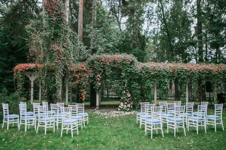 Больше всего нам запомнилась выездная регистрация. Наши декораторы сделали шикарную цветочную арку. А во время самой церемонии полил дождь стеной! Но это нисколько не испортило впечатления от происходящего. В тот момент мы с Никитой спрятались под арку, став спиной друг другу, закрыв глаза. Это было по-настоящему трогательно и необычно. Такое точно не срежиссируешь!