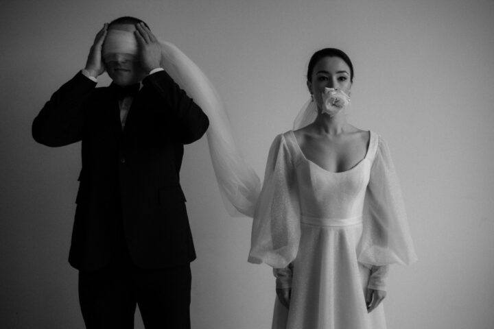 Хотелось воплотить в жизнь историю, где преобладает сочетание элегантной классики и минимализма. Уделить внимание деталям: показать асимметрию, тональность и лаконичность декора и флористики. А началось все с наших моделей. С улыбки Гульджан, которая не даёт шансов остаться равнодушным, и ты невольно начинаешь улыбаться вместе с ней. И, конечно же, с непоколебимого взгляда Руслана.