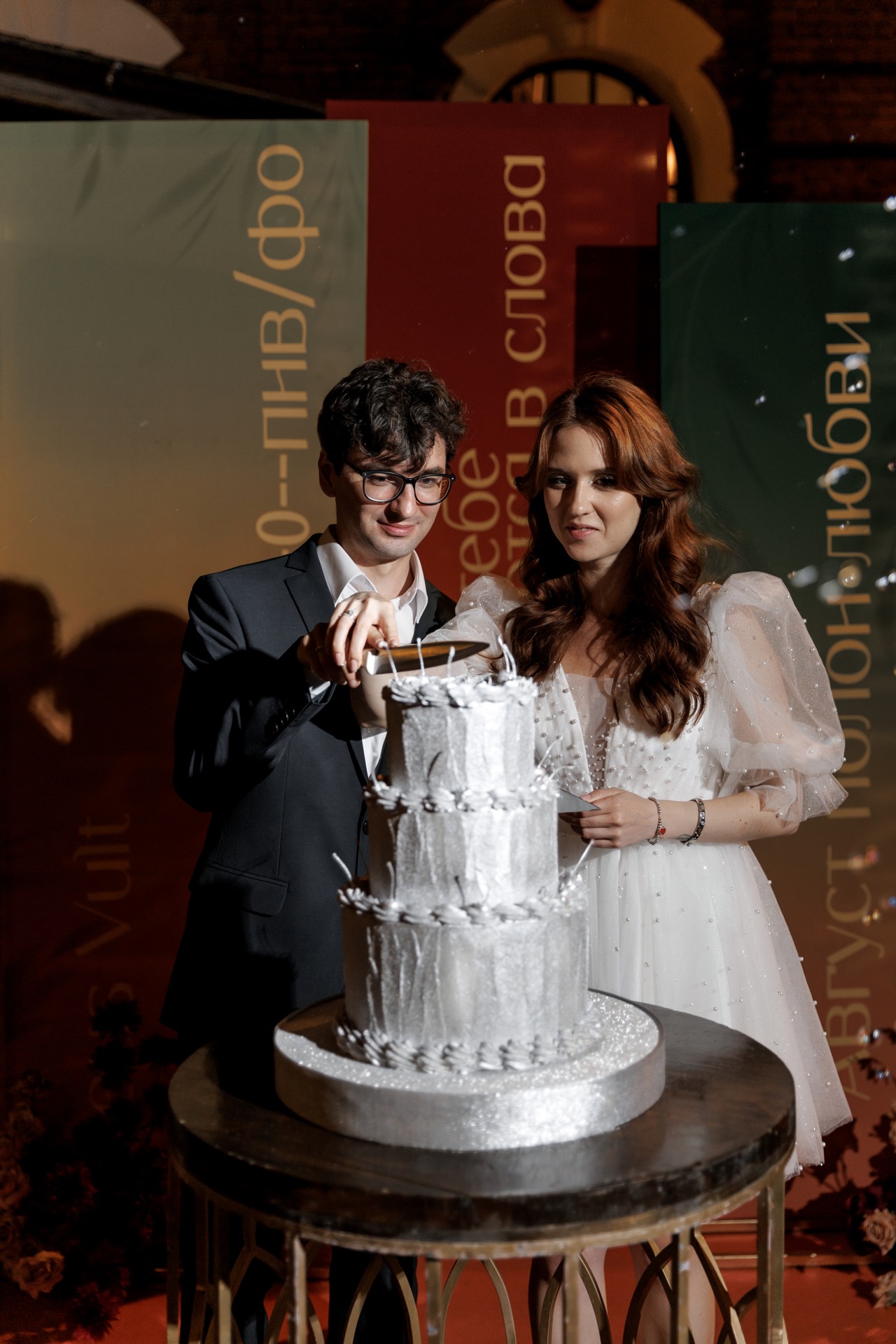 Торт был нашей изюминкой — он был трёхъярусным, с черешней, и полностью покрытым серебряным глиттером!