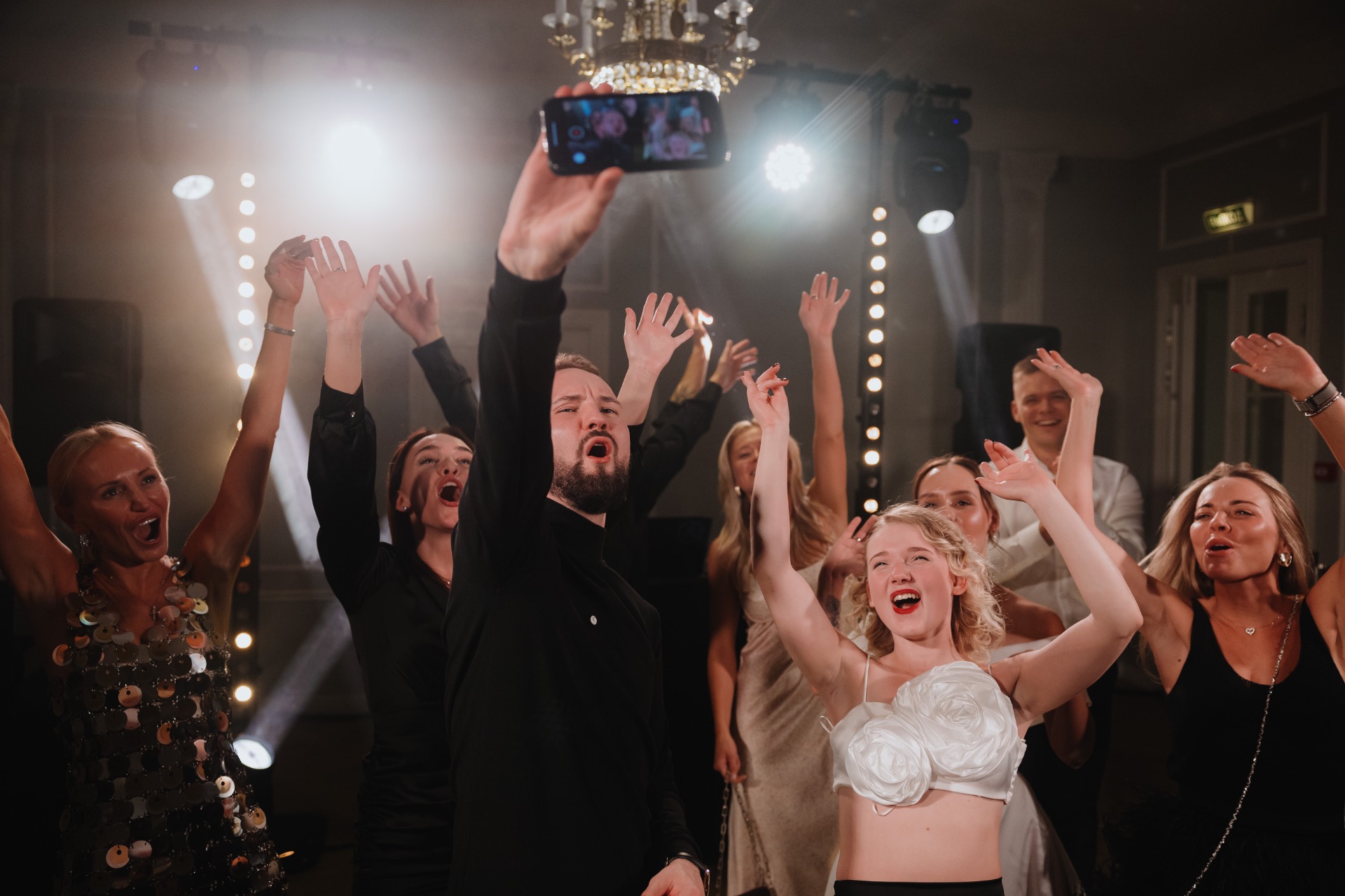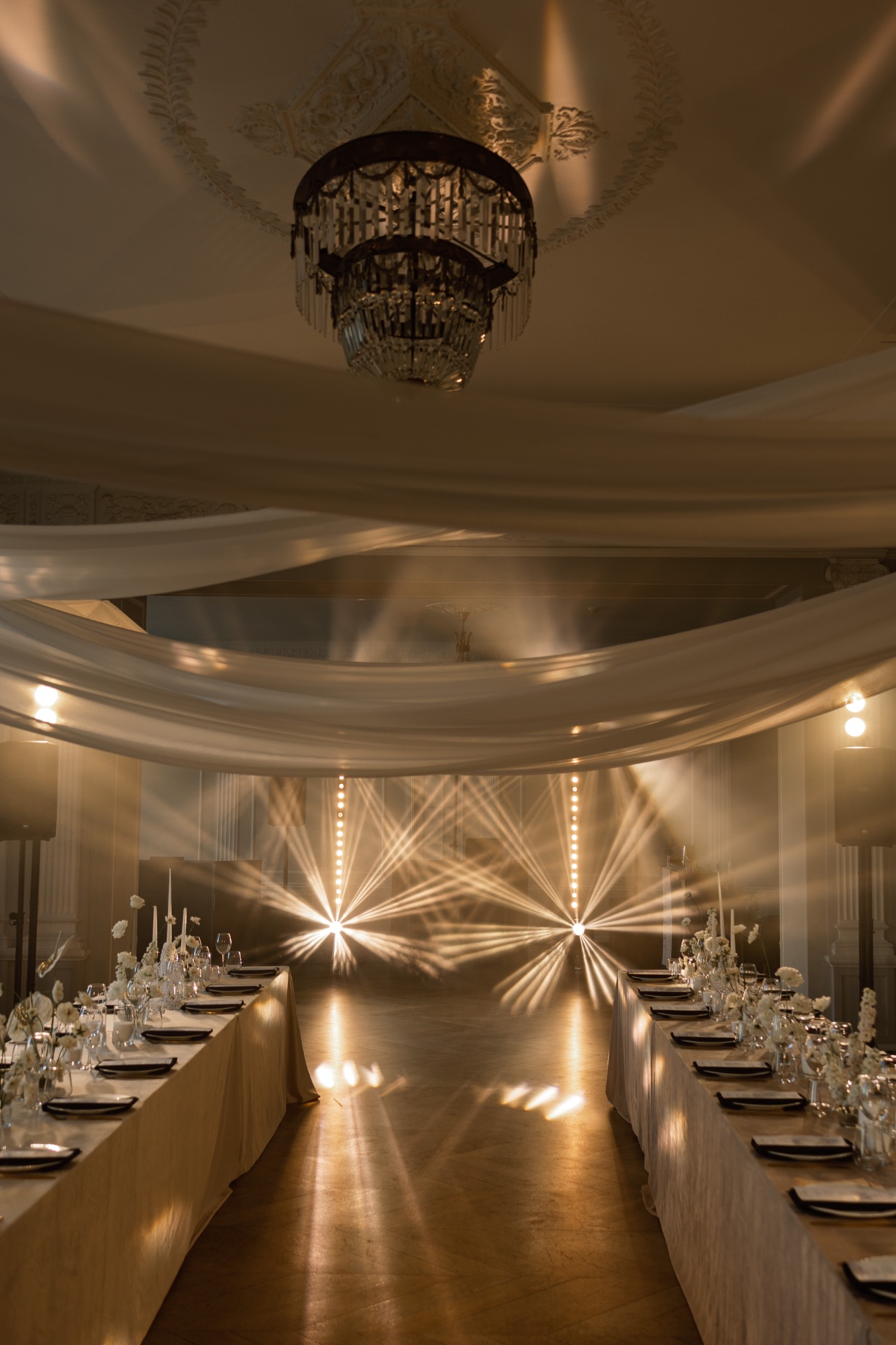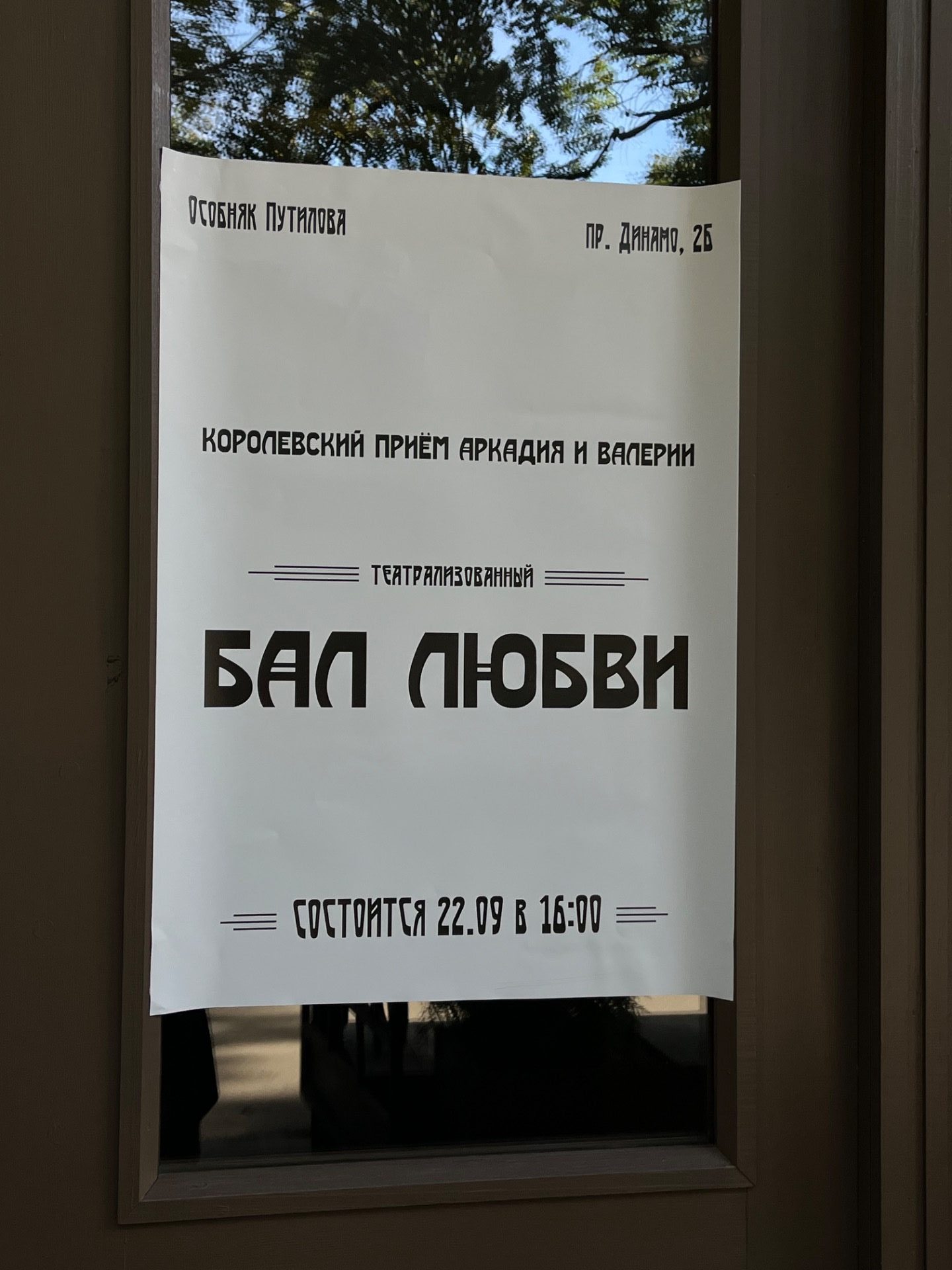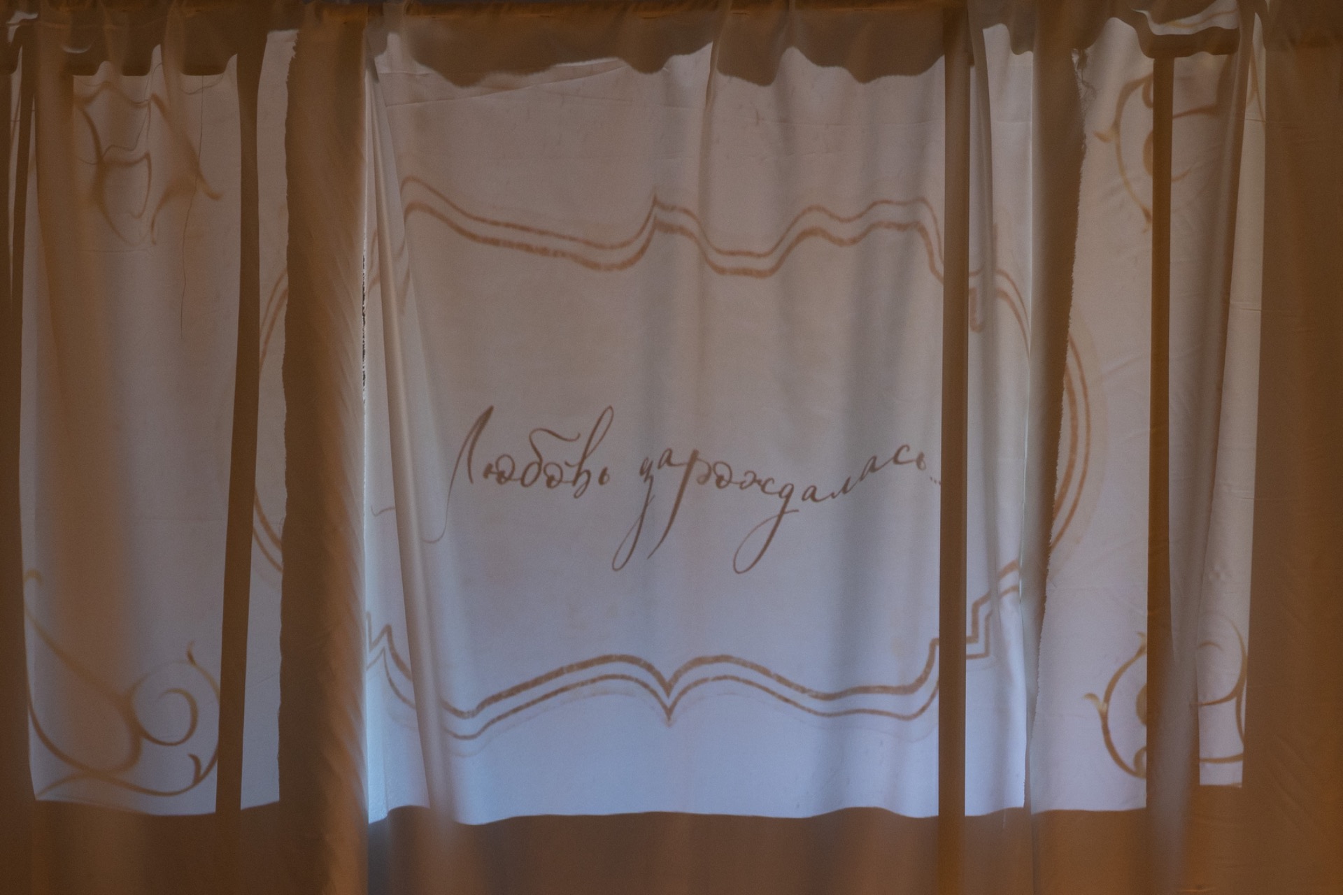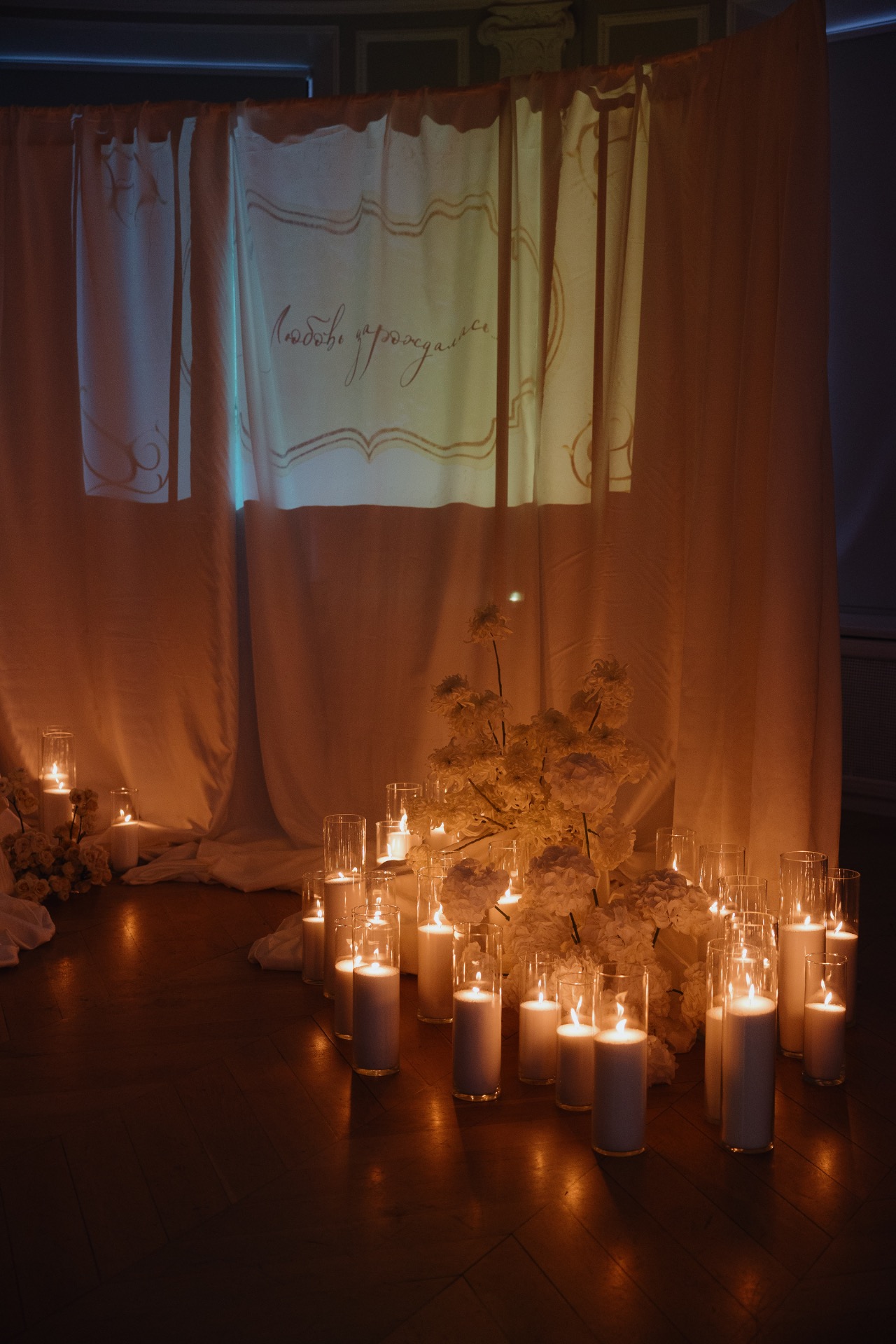 Наш бал был разделен на театральные акты, названия которых, также отображались на полотне. Так мы погружали гостей в атмосферу бала. В зале звучала живая музыка — дуэт скрипки и виолончели играл неоклассику, которую мы любим.