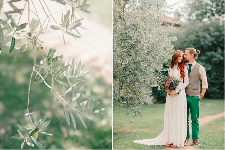 Так, например, со всем декором помогала моя мама, букет невесты собирали жених с фотографом, обкрадывая местные ландшафты, и даже платье невесты и костюм жениха нам сшила подруга. В сам съемочный день главными декорациями послужили живописные пейзажи Тосканы и вилла, вся, до кирпичика, пропитанная духом Италии. Они дополнили съемку особой чувственной атмосферой, сделав бохо максимально нежным.