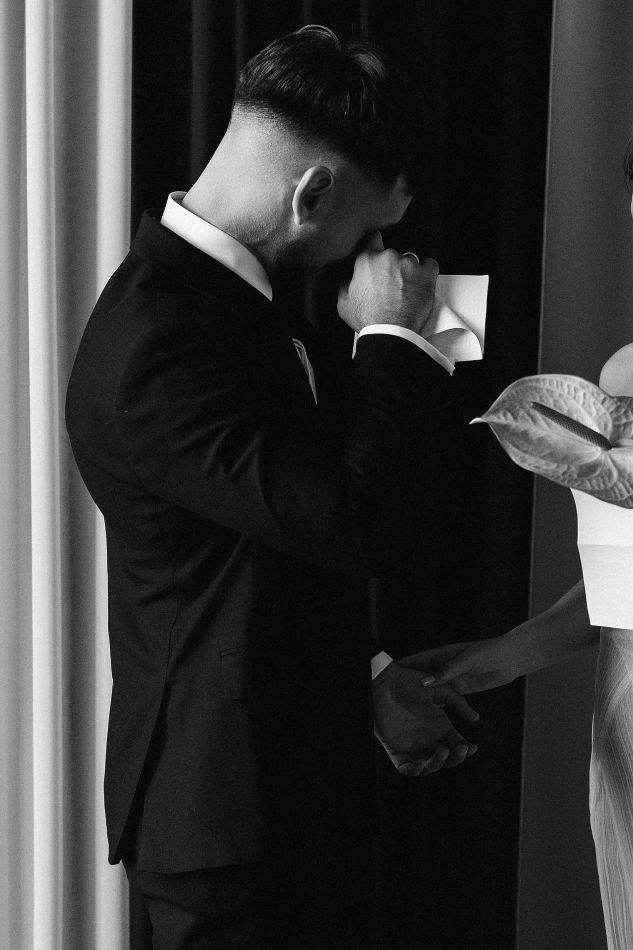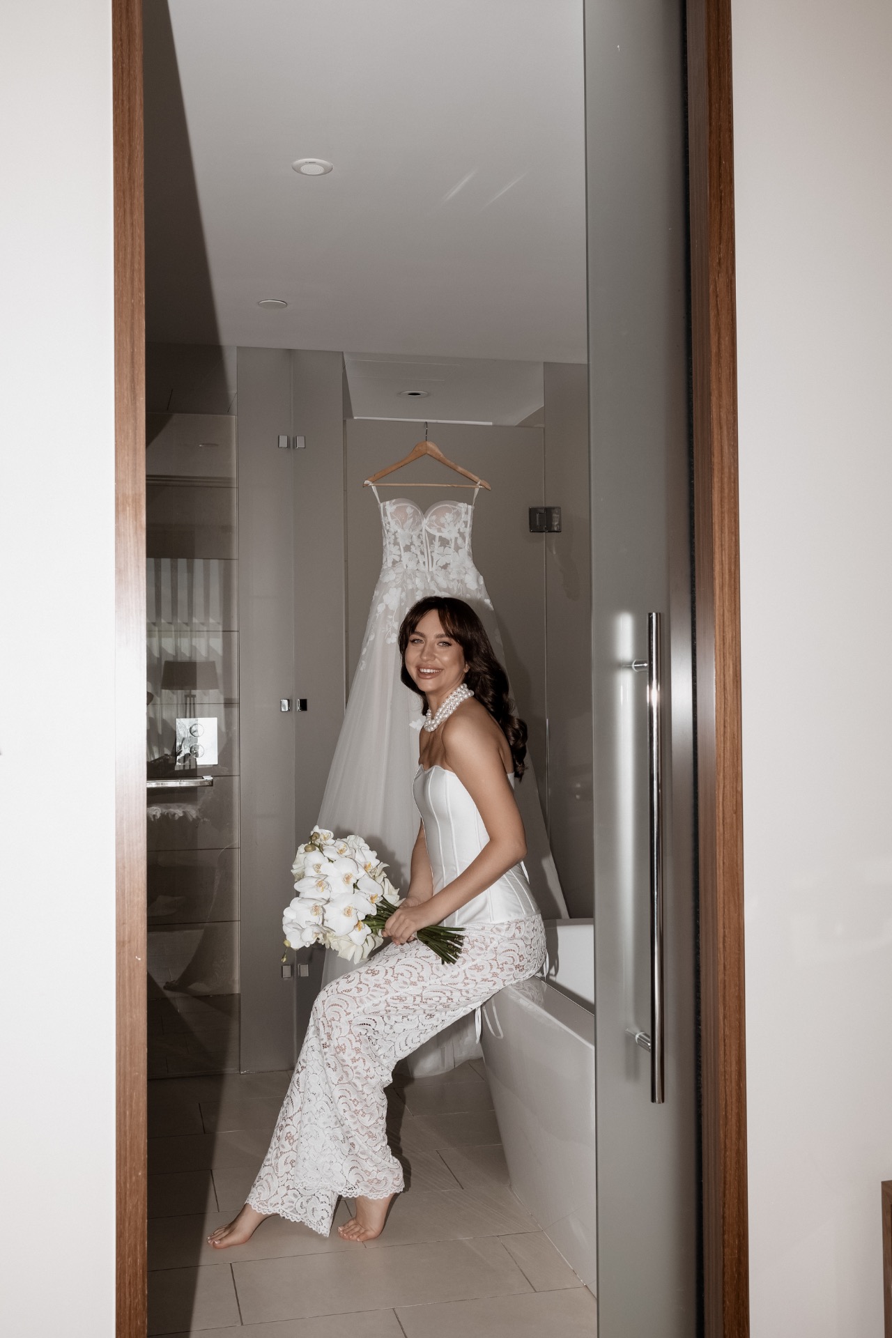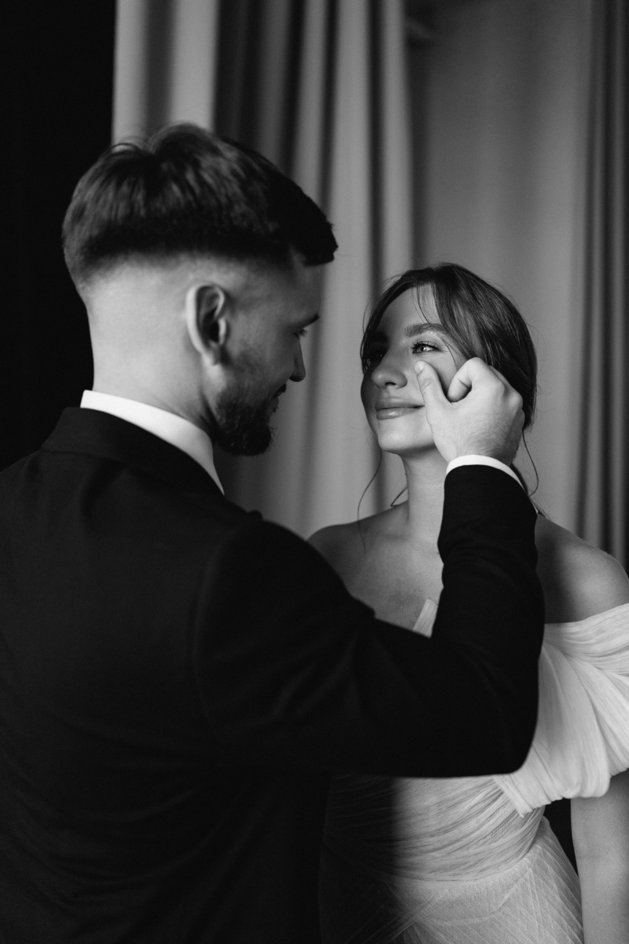 Утро началось в отеле Hyatt Regency Москва Петровский Парк. Именно там произошла наша первая встреча в образах жениха и невесты! У меня трепетало в груди от волнения и дрожали руки от страха. Это был очень трогательный момент.