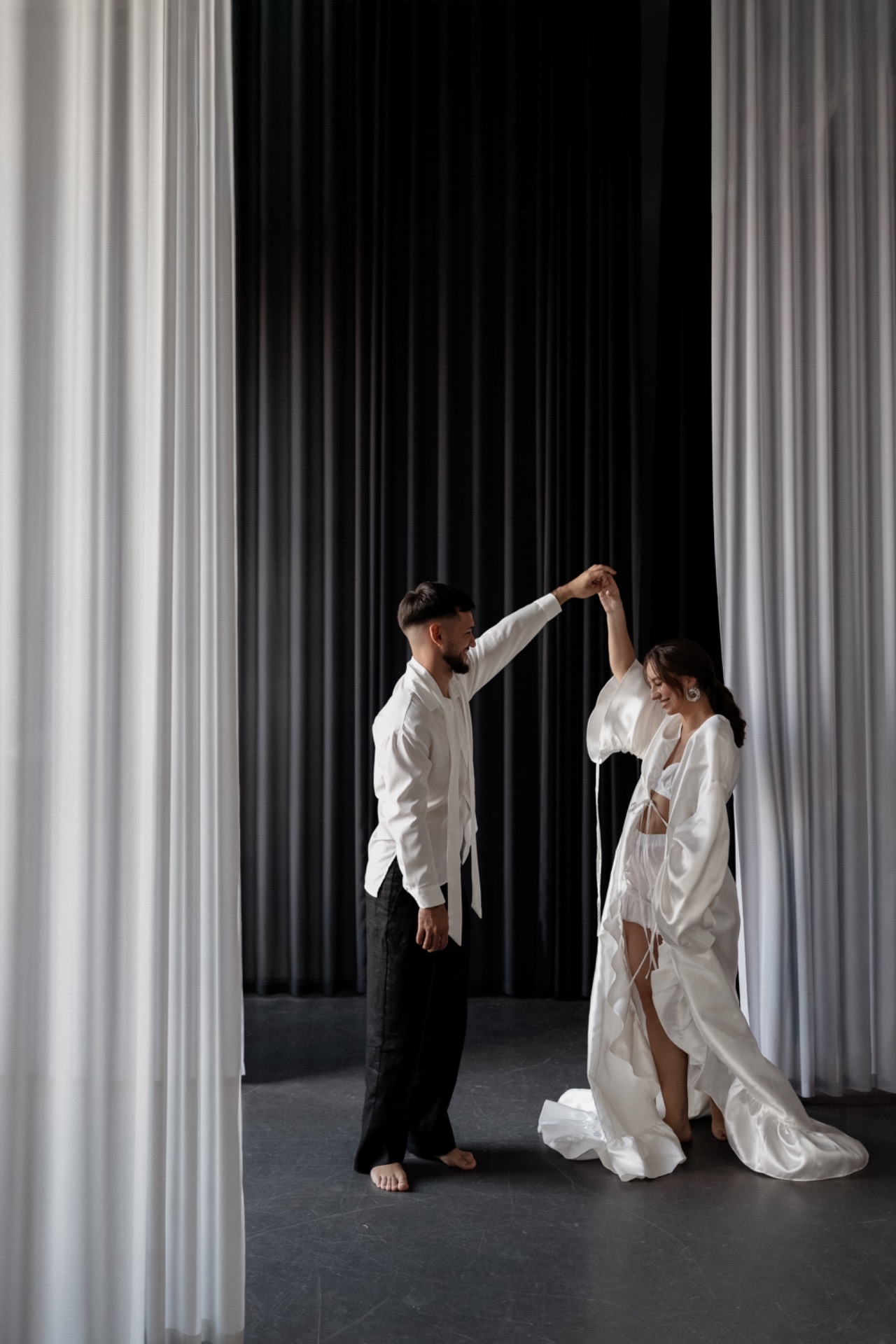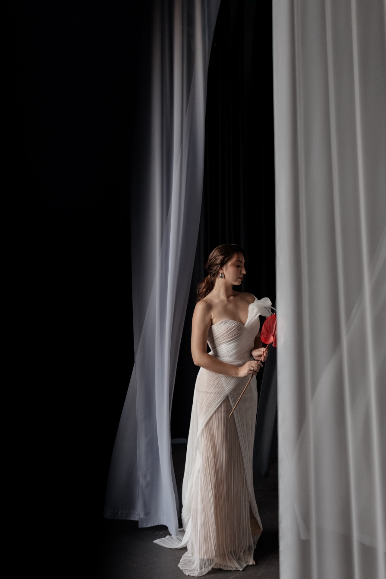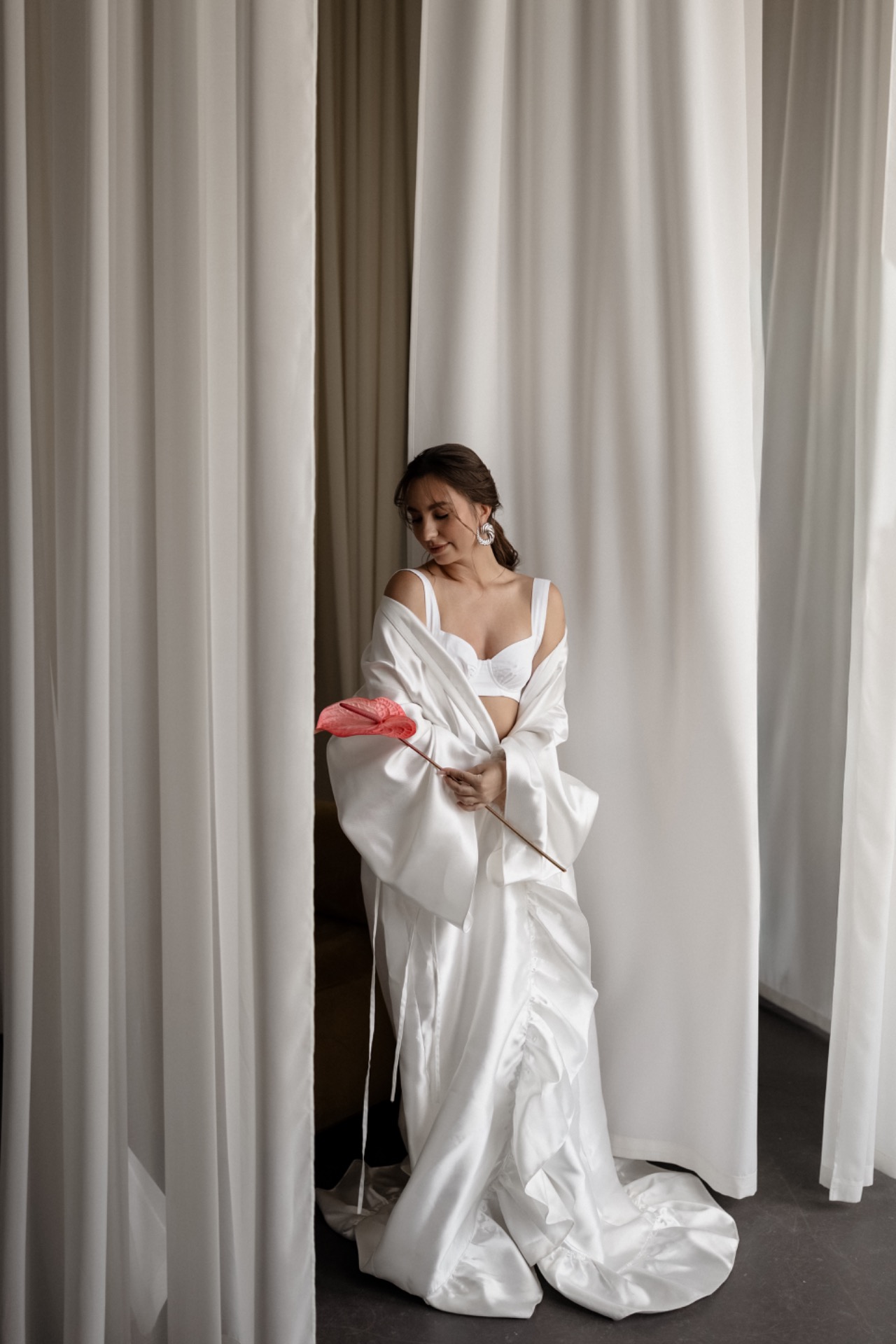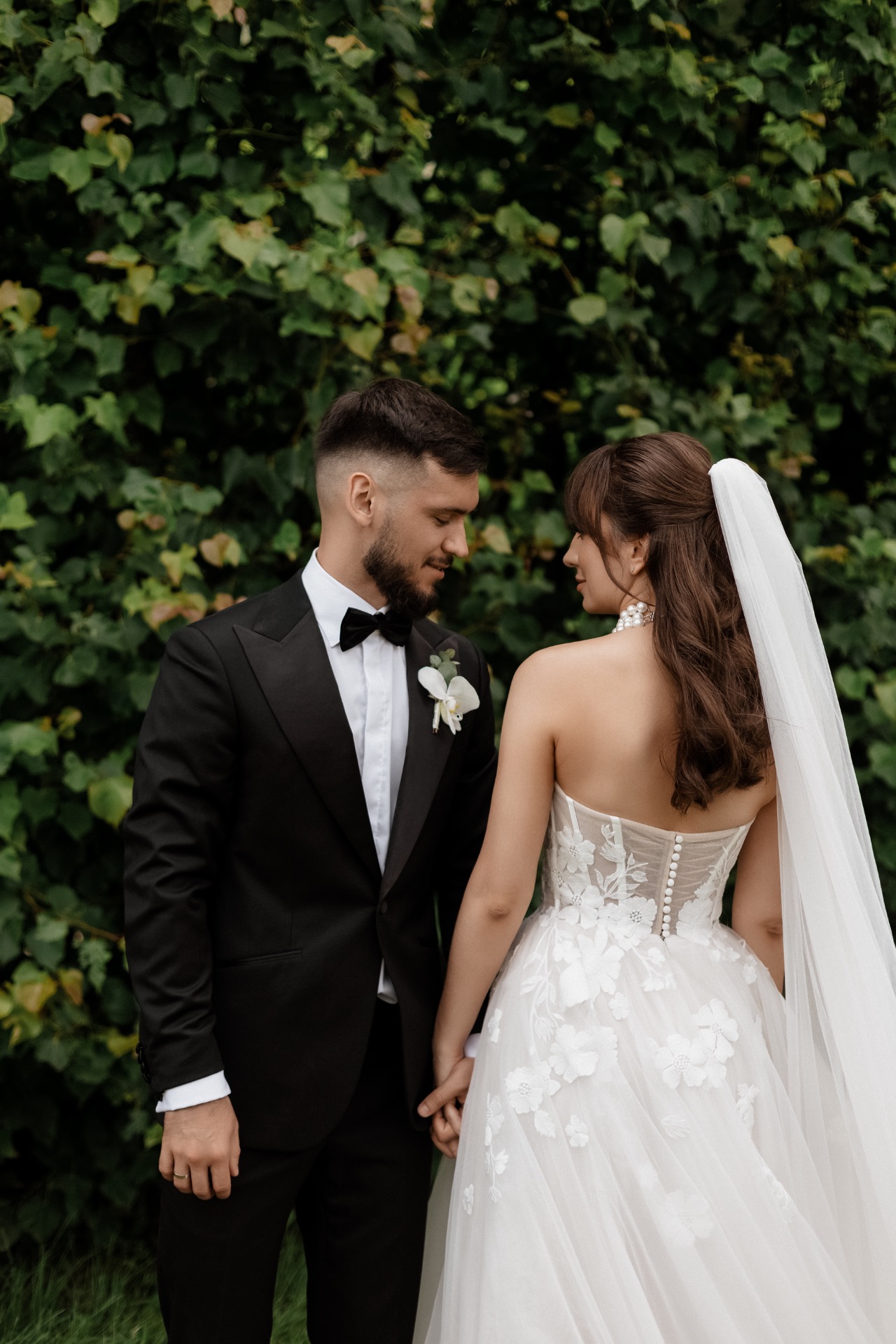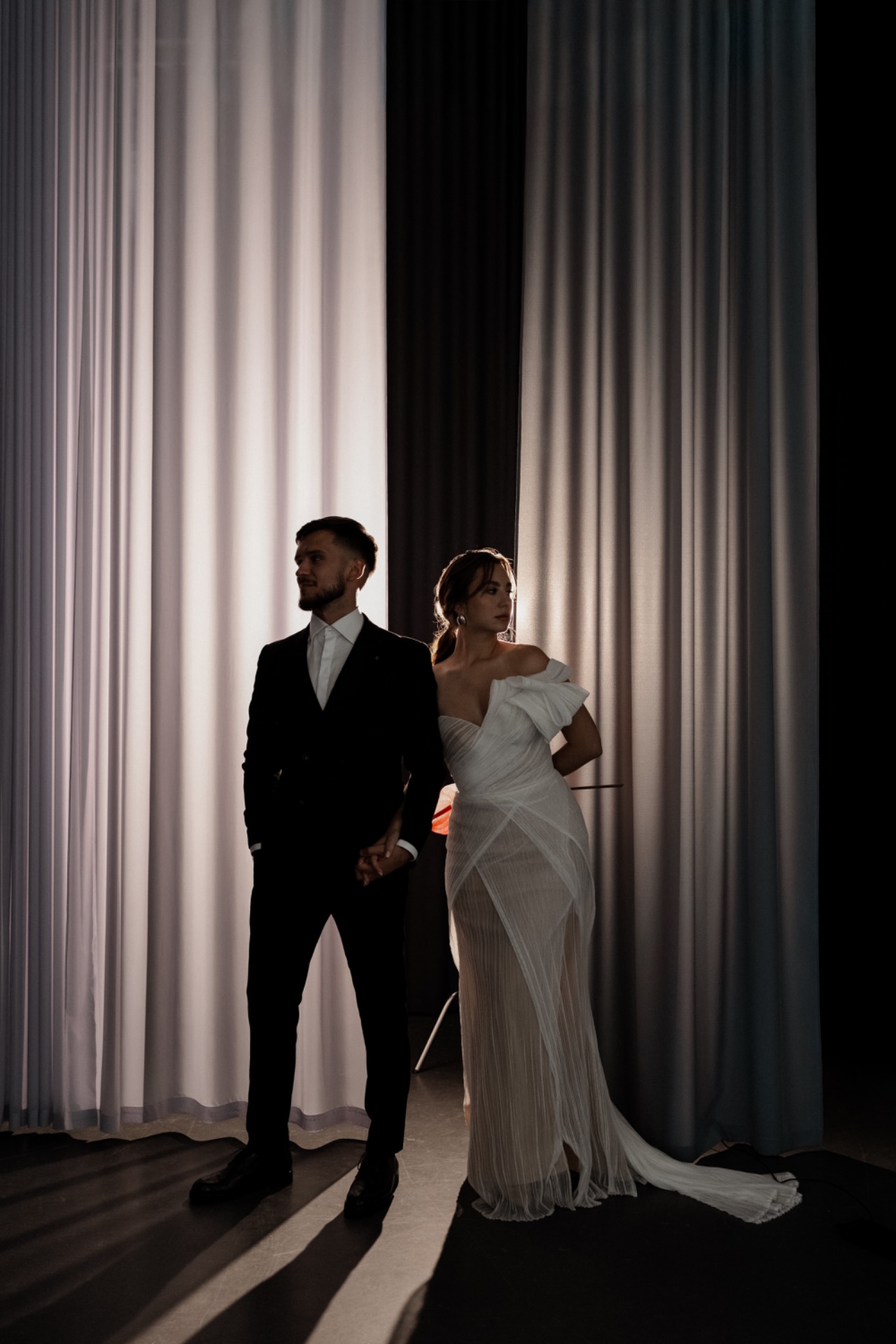 Мы сразу знали, что наш свадебный день будет иметь два настроения. Поэтому мы подготовили образы для каждой части праздника — торжественной церемонии и праздничного ужина.